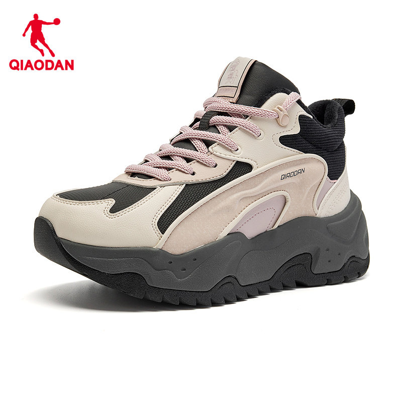 乔丹泡芙鞋革面防水高帮加绒保暖老爹鞋女棉鞋2025冬季休闲鞋女鞋
