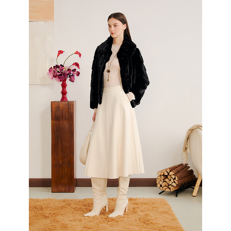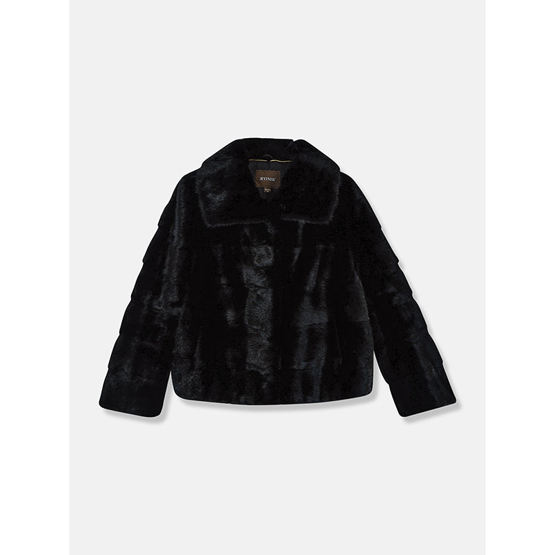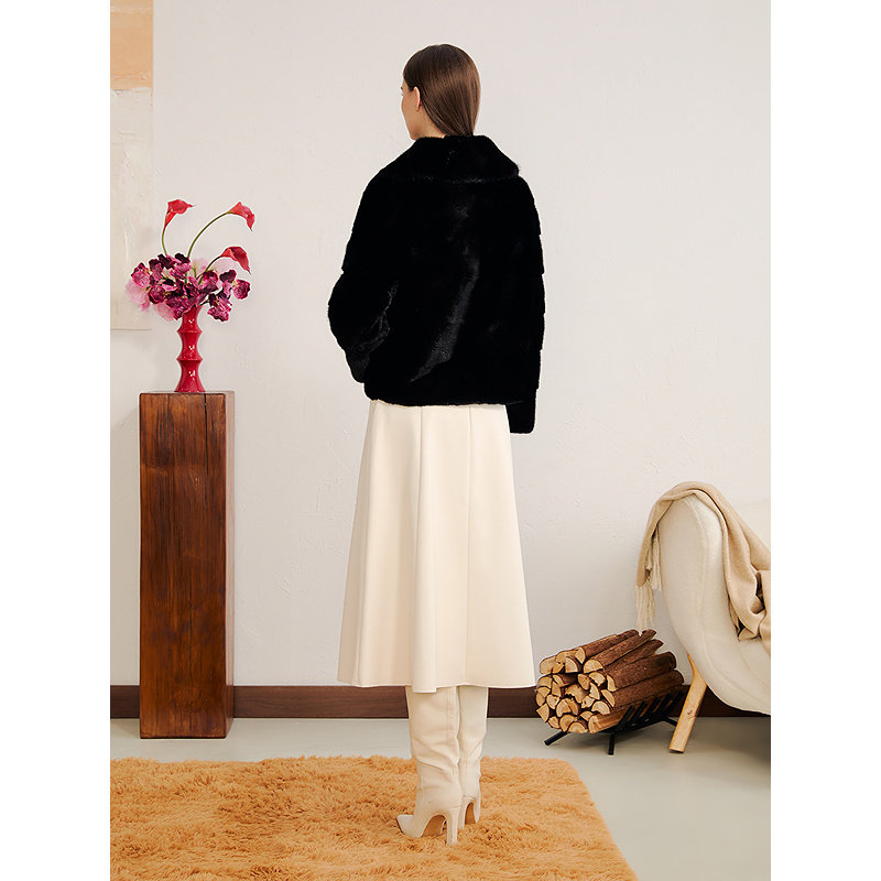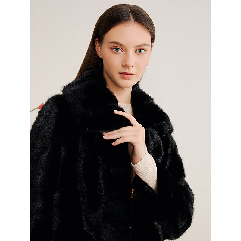 YINER音儿专选2025冬季新款法式奢感母貂毛翻领LOGO钩扣H型短皮草