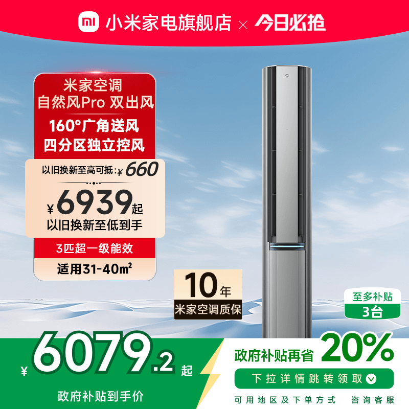 小米米家立式空调自然风Pro双出风3匹超一级能效家用客厅柜机