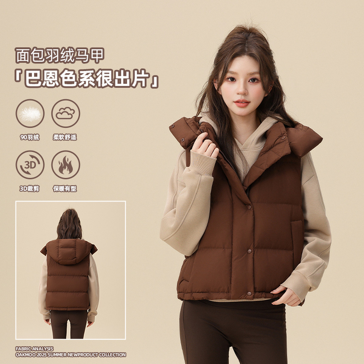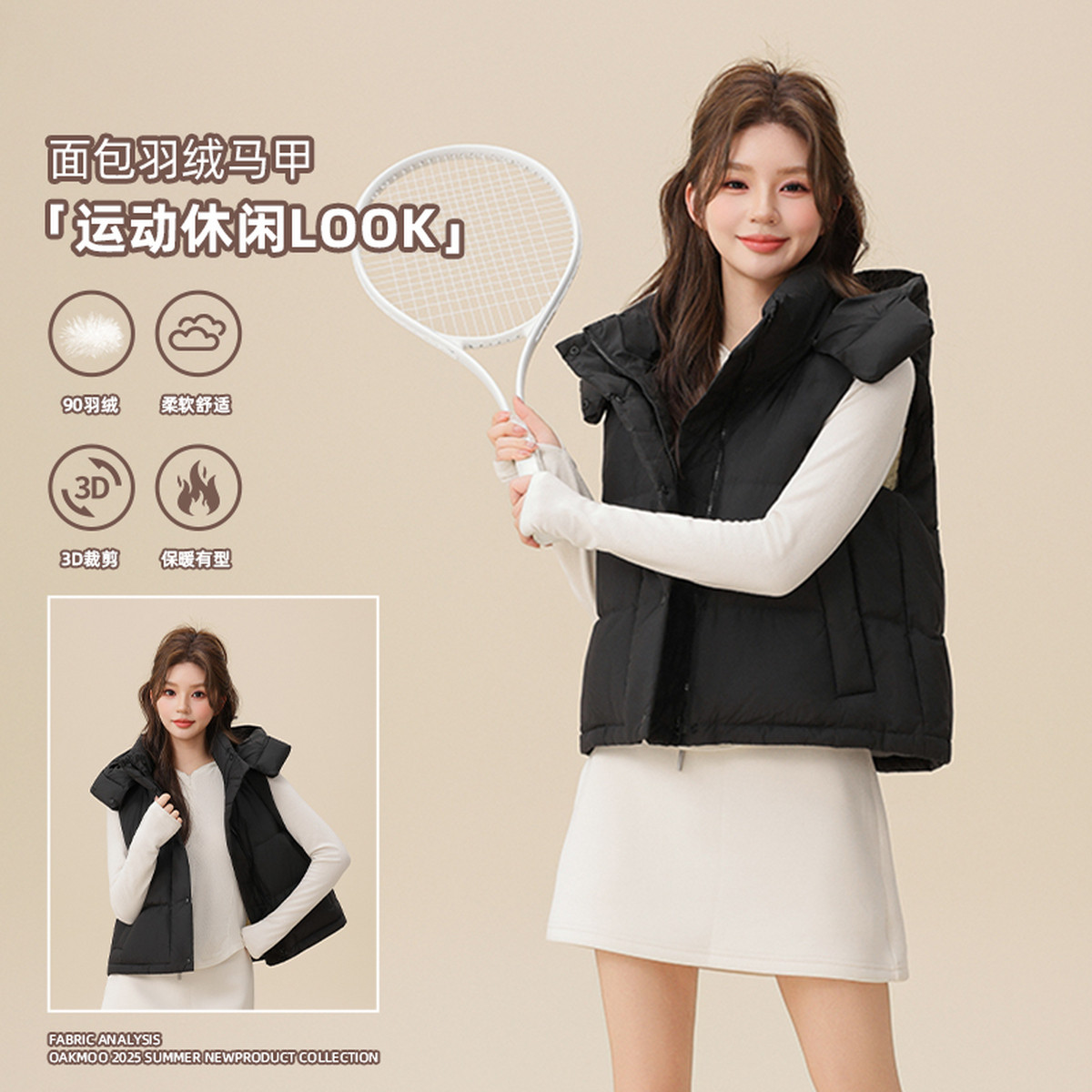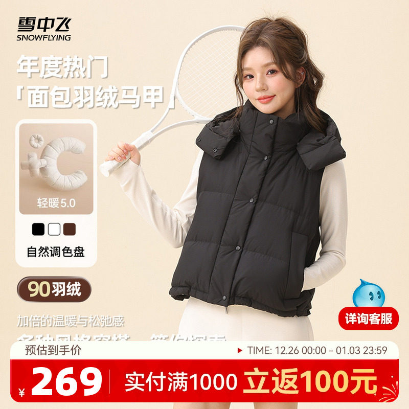雪中飞2025冬新款女士无袖轻薄羽绒马甲背心美拉德户外保暖