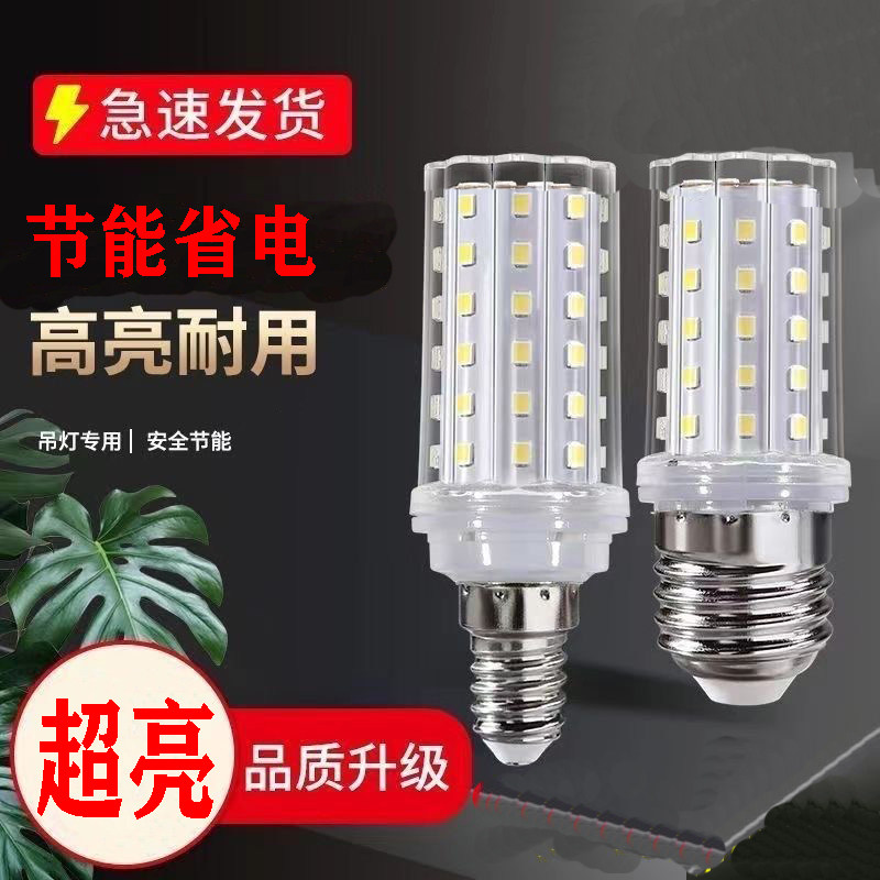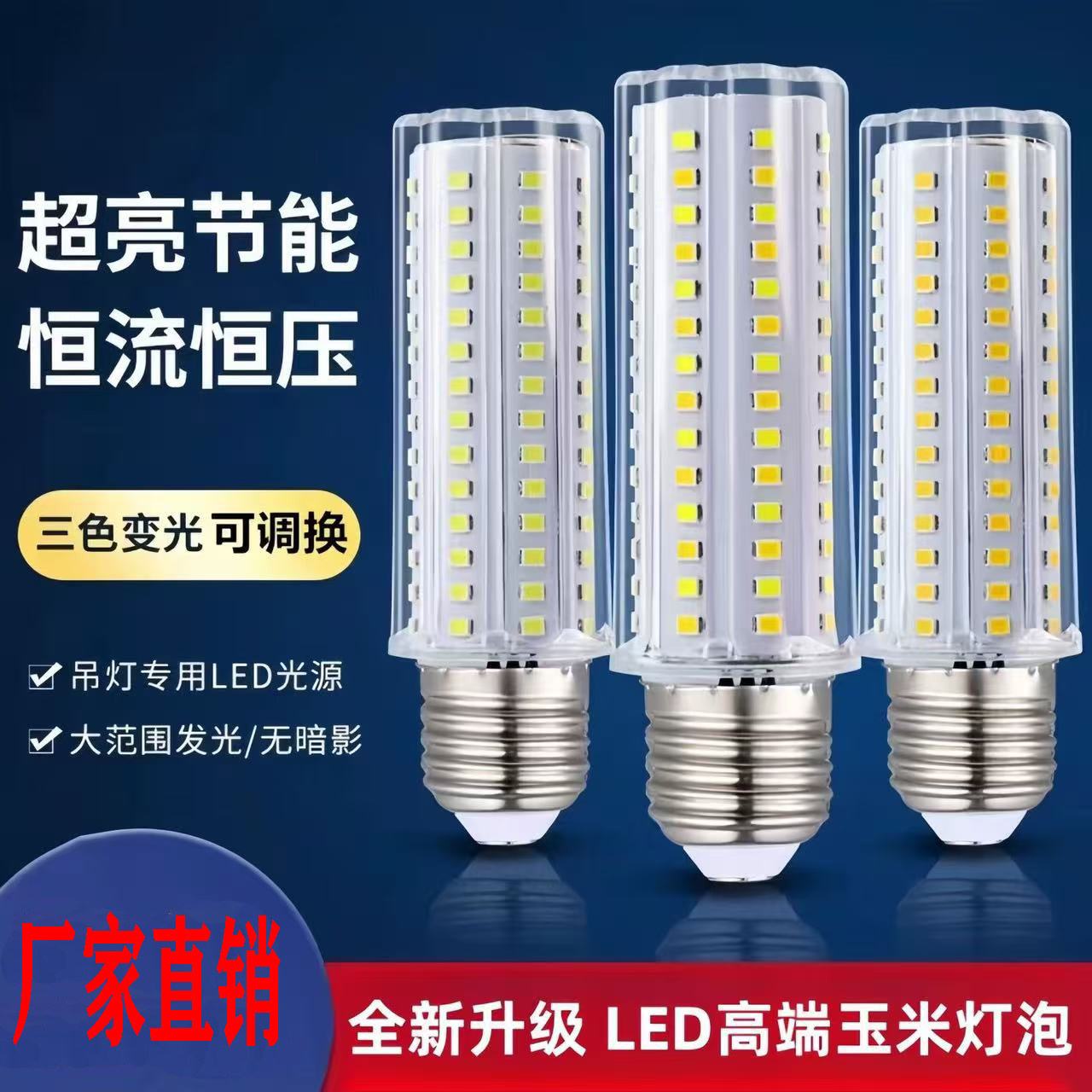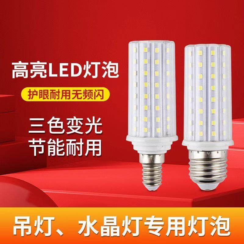 超亮led灯泡家用三色e27大螺口e14节能玉米吊灯小螺口护眼水晶灯