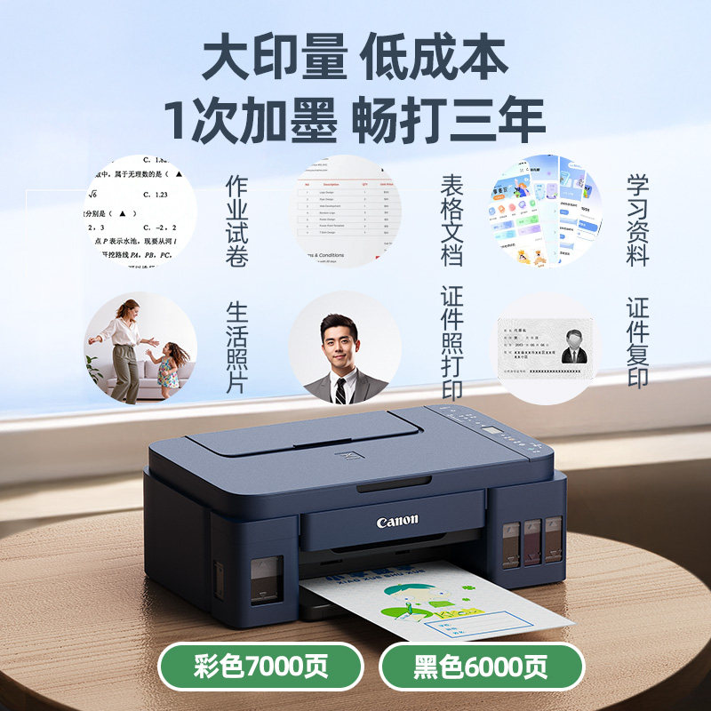 佳能G3811彩色墨仓式打印机复印扫描一体机连供家用小型可连手机无线学生作业照片家庭办公专用政府补贴G3810