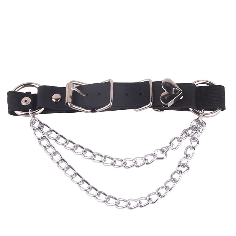 日韩原宿爱心装饰腿环腿圈松紧带可调节金属链条流苏腿链吊袜带