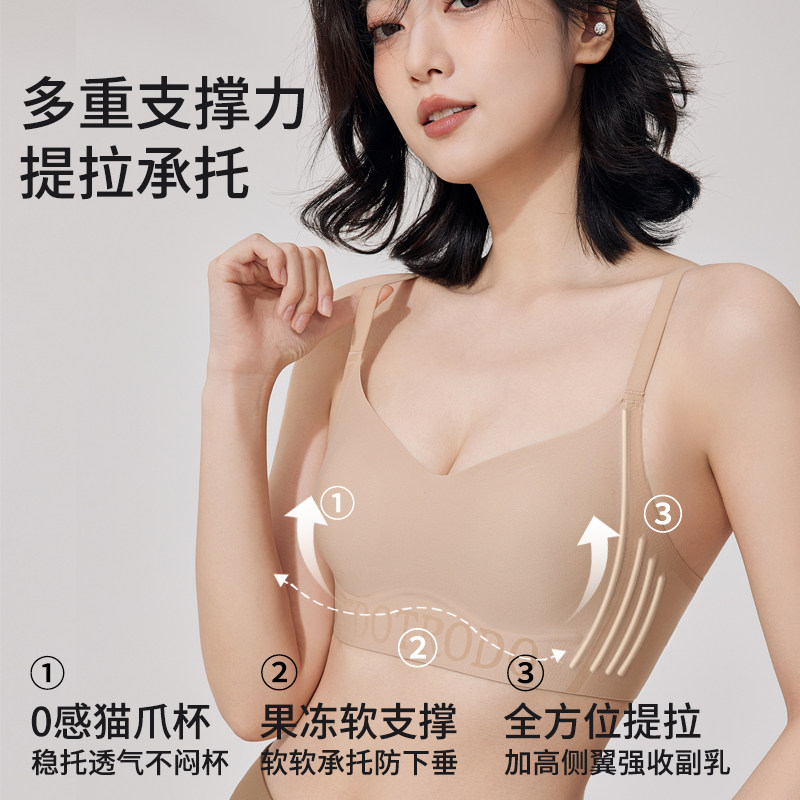 润微提拉内衣女大胸显小无痕防下垂收副乳胸罩爆款隐形粉底液文胸