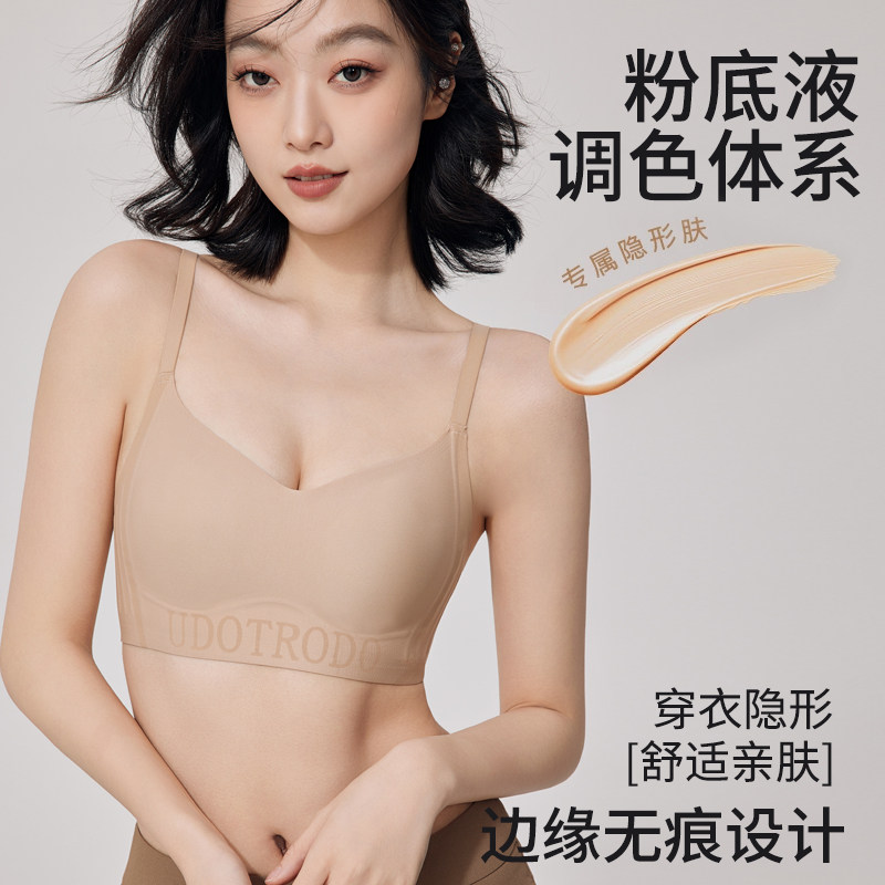 无痕粉底液内衣女大胸显小夏季薄款隐形一体肤色细肩带美背文胸女