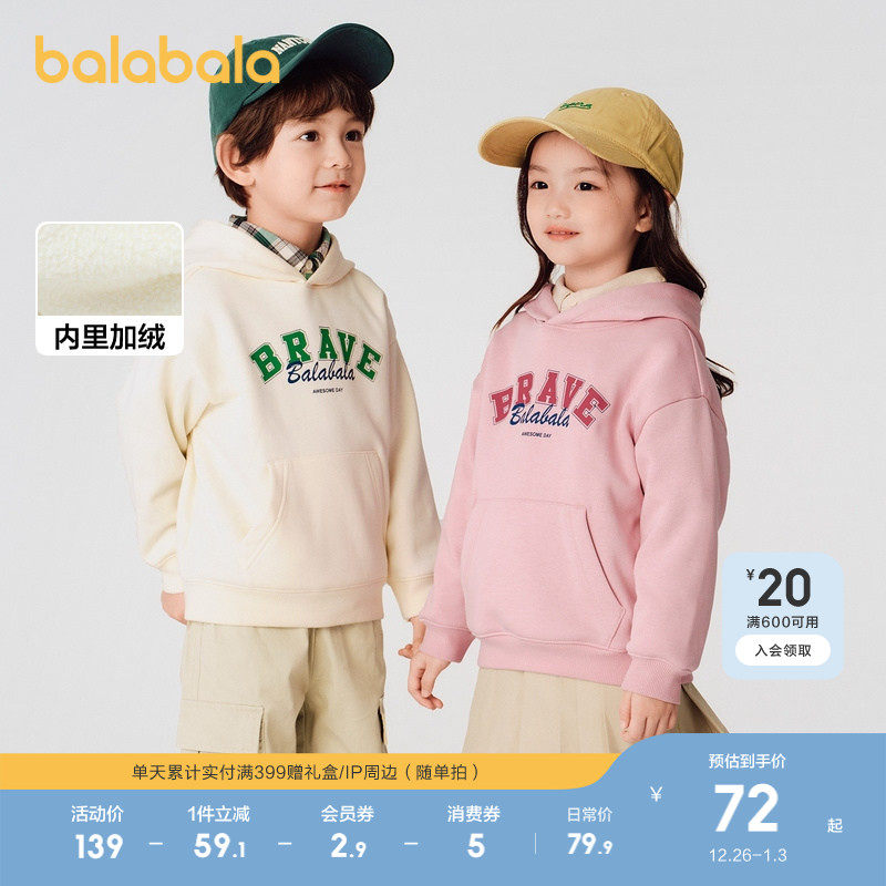 巴拉巴拉童装儿童卫衣男童秋冬女童加绒连帽上衣洋气休闲百搭上衣
