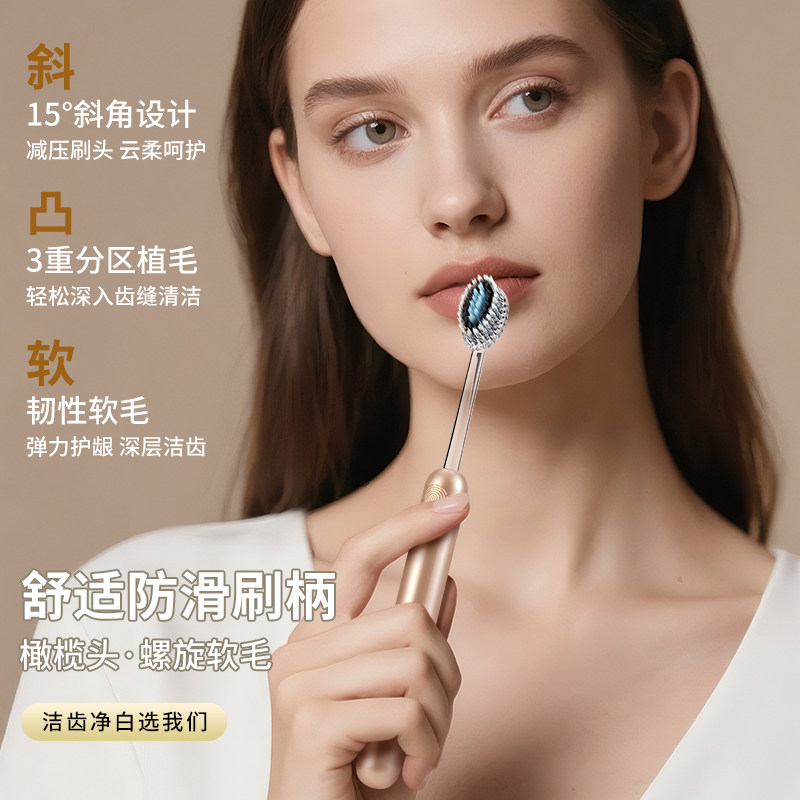 山型软毛牙刷凸面螺旋刷丝深度清洁家用高档成人女士专用宽头轻奢