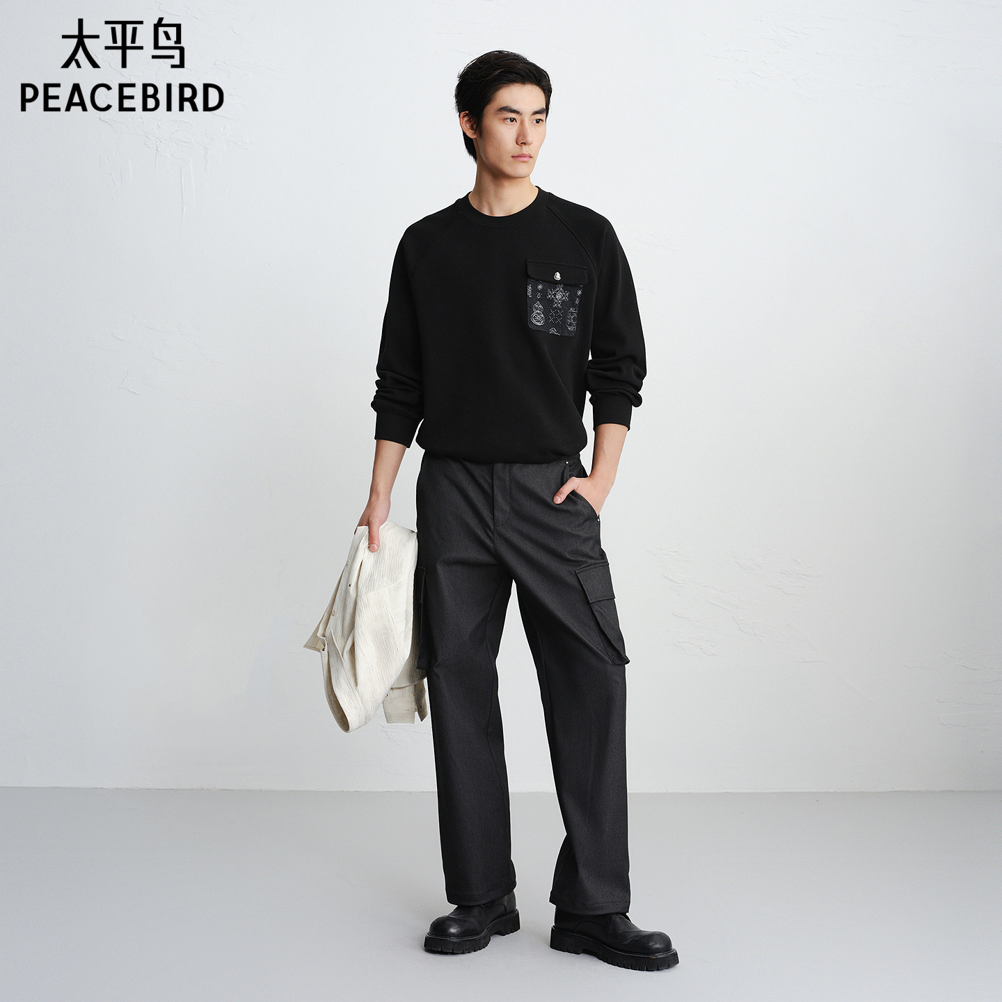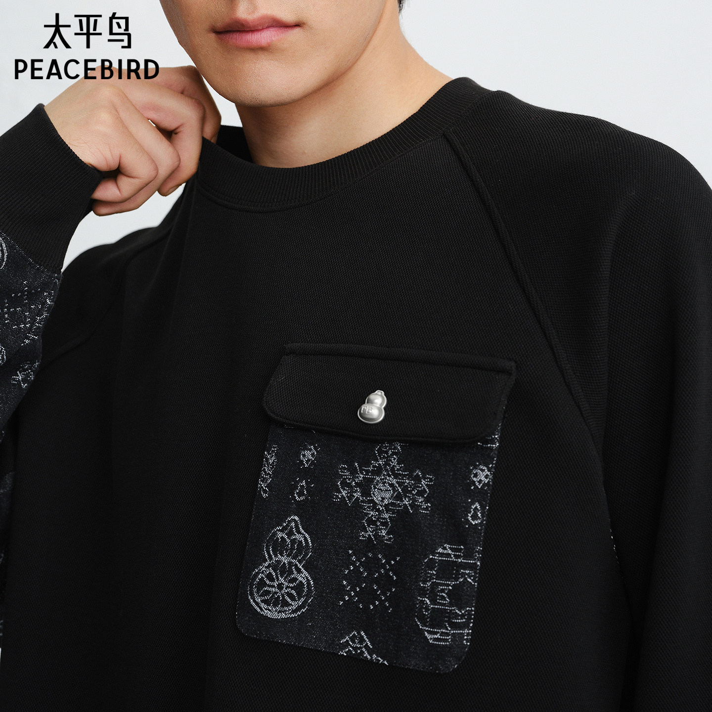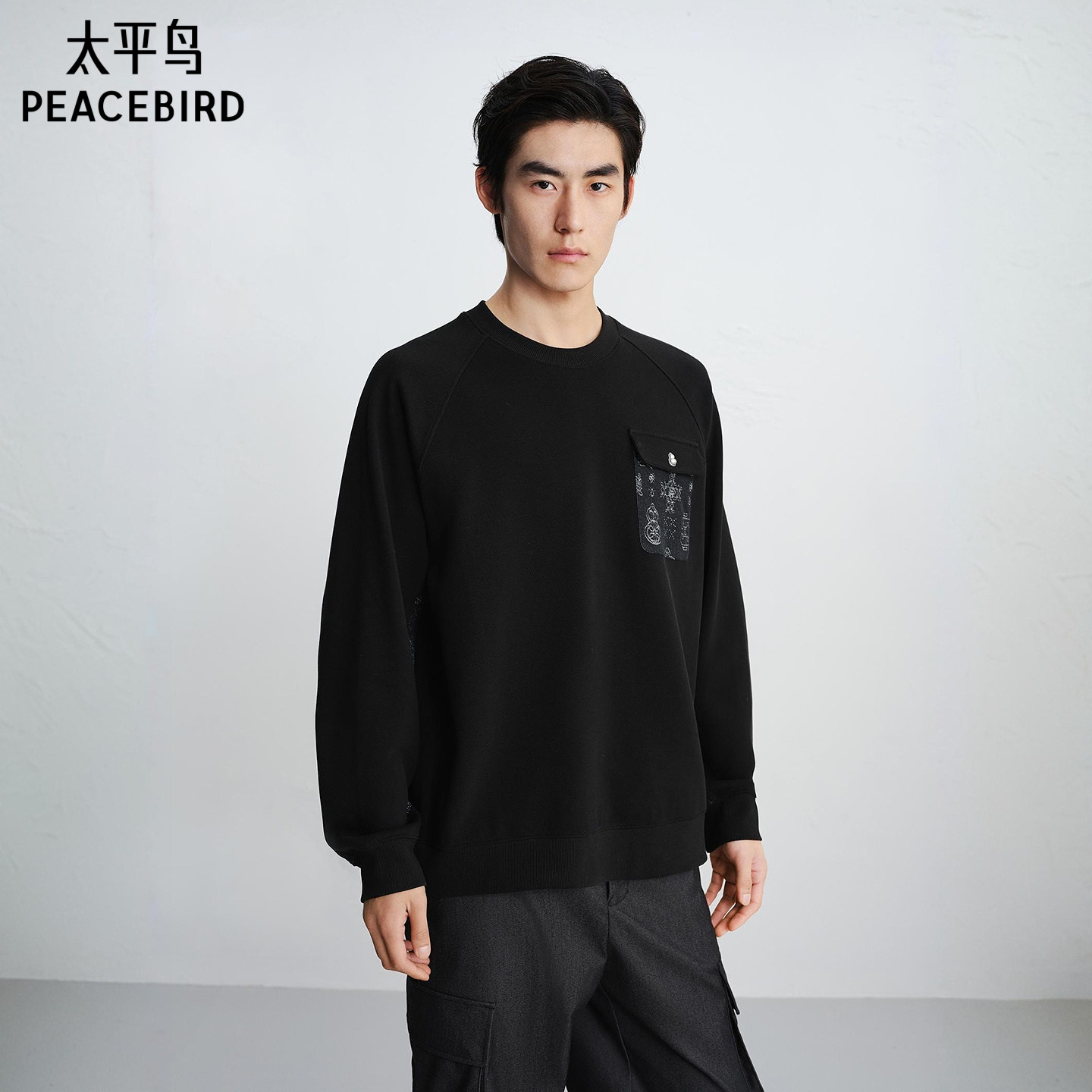 【商场同款】太平鸟男装 休闲卫衣拼接面料男士潮流卫衣B2CRG1133