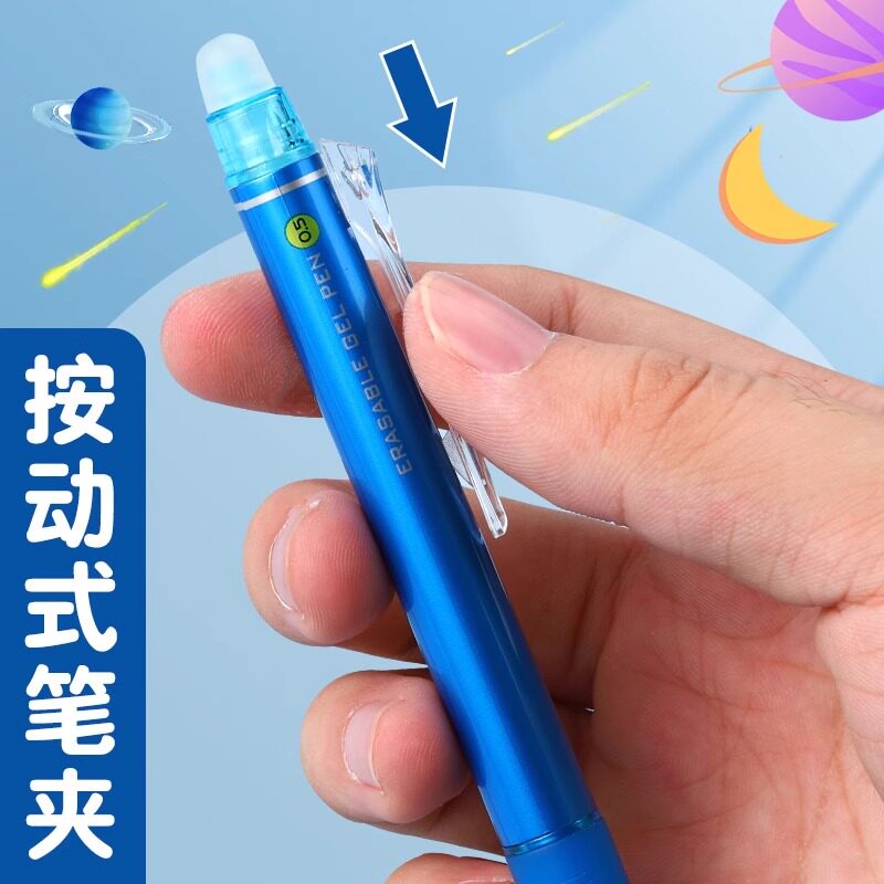 晨光热可擦按动中性笔学生专用0.5子弹头黑色蓝色晶蓝消热敏摩磨易擦水笔高颜值刷题笔按压式签字笔