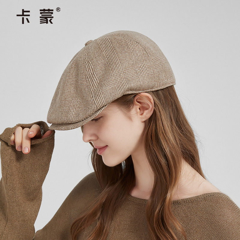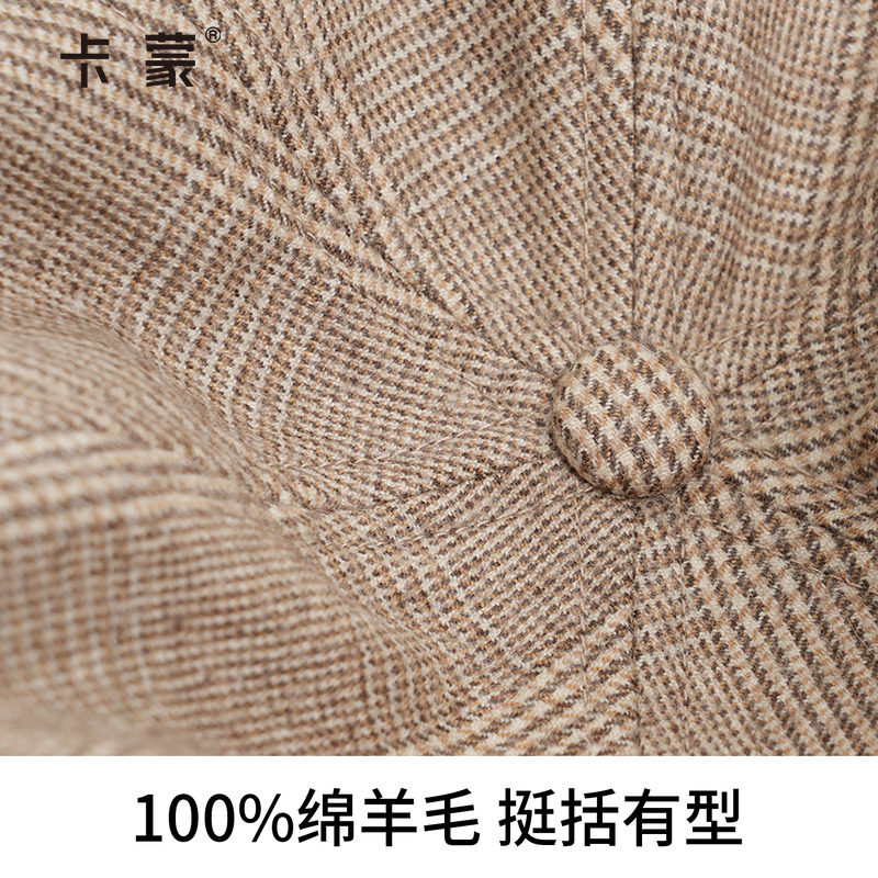 卡蒙绵羊毛复古贝雷前进帽女时尚百搭画家鸭舌帽加深大头围显脸小