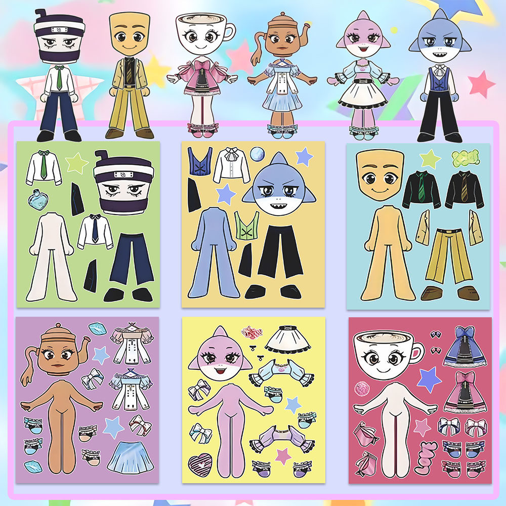 萌崽新款学霸学渣果冻贴纸安静书儿童免裁剪手工粘贴DIY女孩趣味玩具