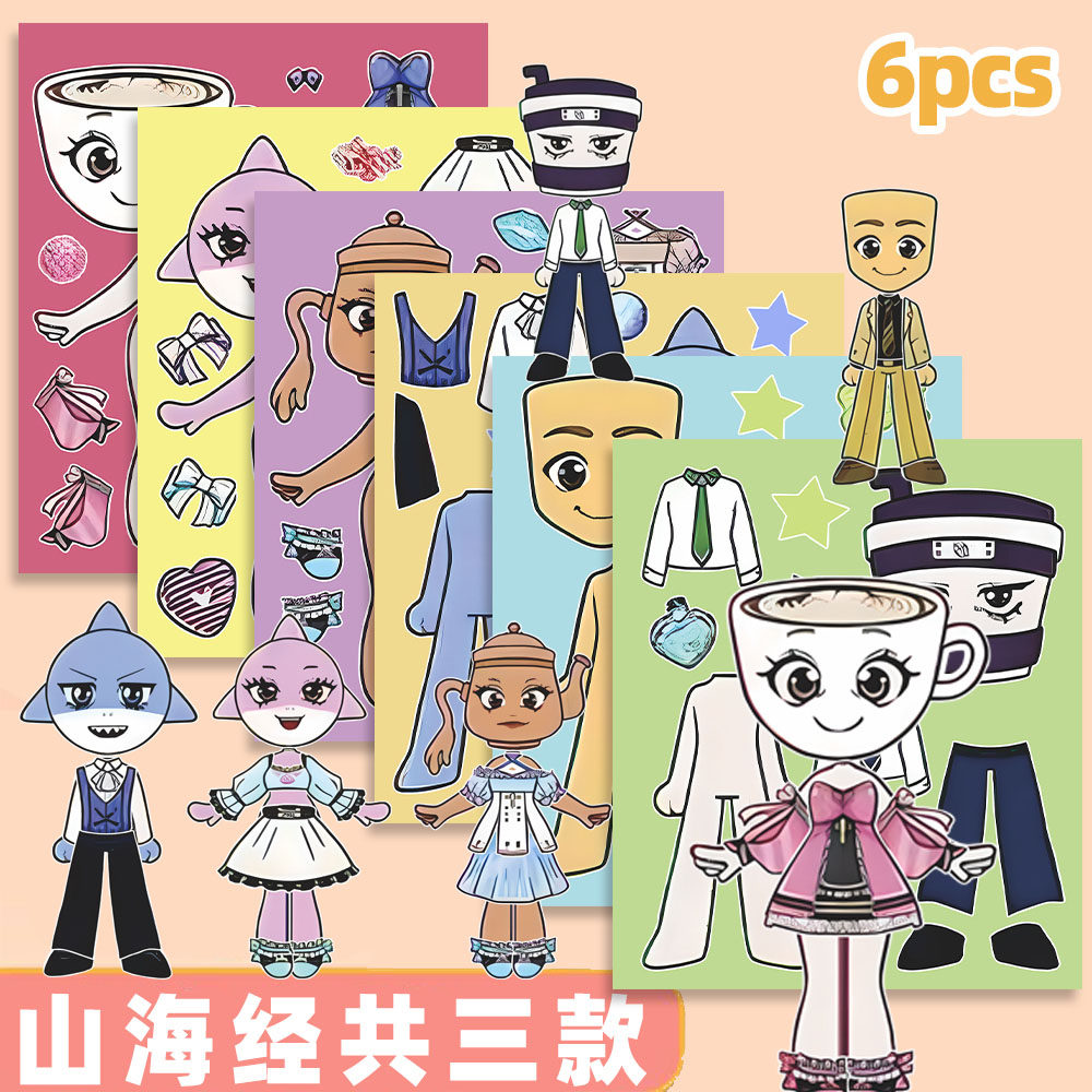 热门山海经换装贴纸提升儿童专注力趣味益智亲子手工游戏装饰贴画
