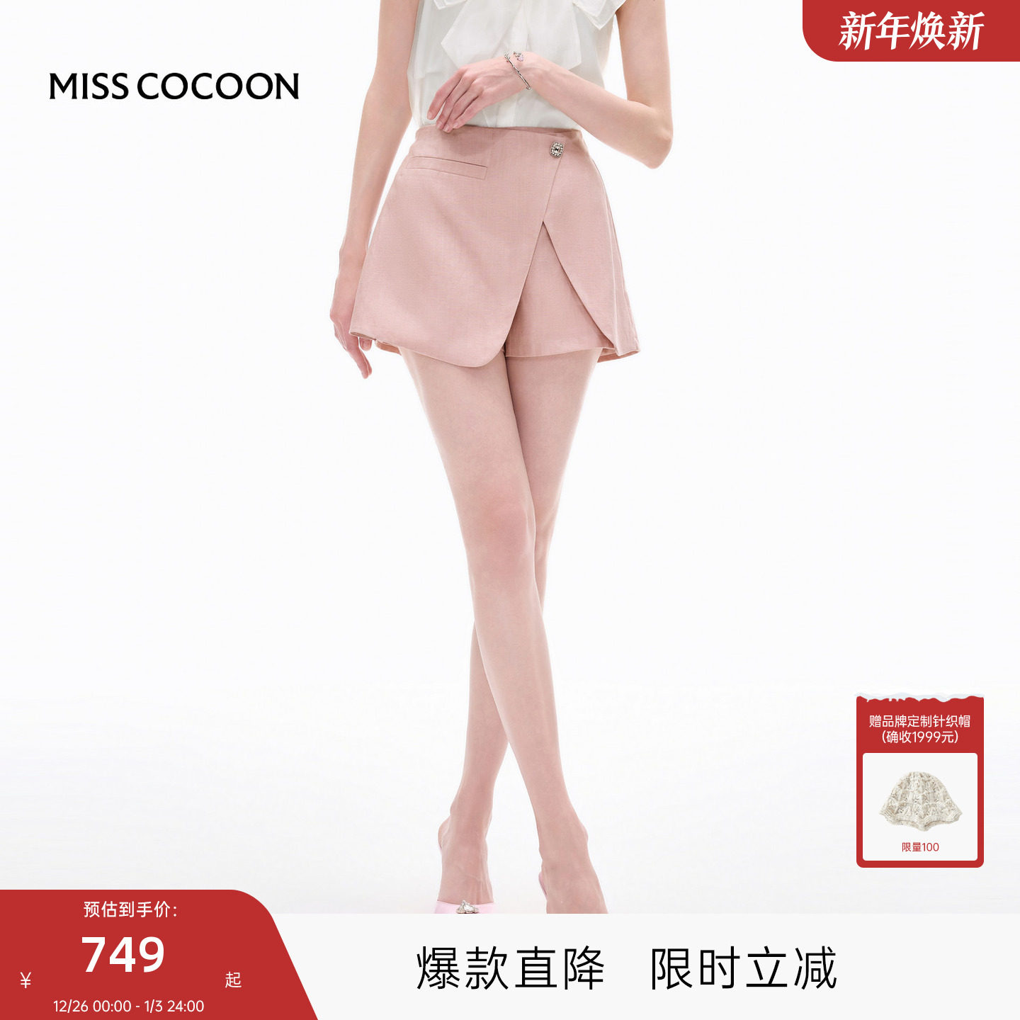 MISSCOCOON可可尼天丝亚麻粉色裙裤2025秋季新款A字短裙半身裙女