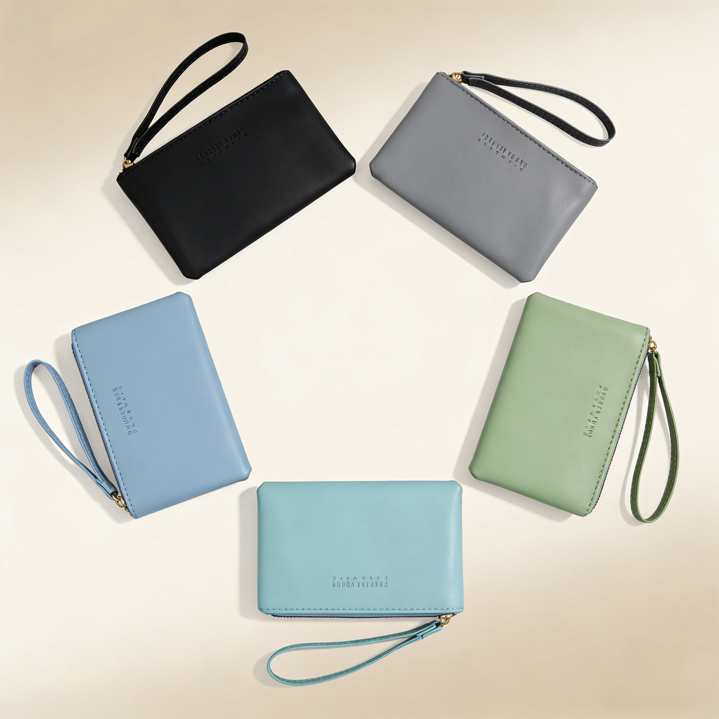 简约女士小钱包韩版小手包纯色多功能大容量零钱包拉链零钱包卡包
