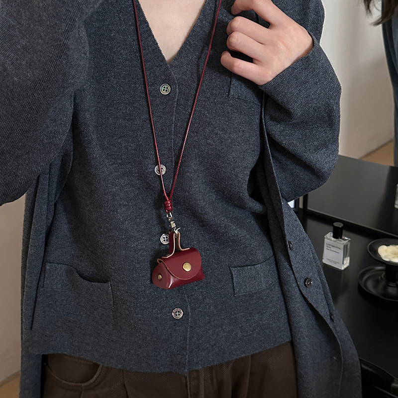 非金属皮质项链耳机套挂件链零钱收纳小包配饰锁骨链颈链毛衣链