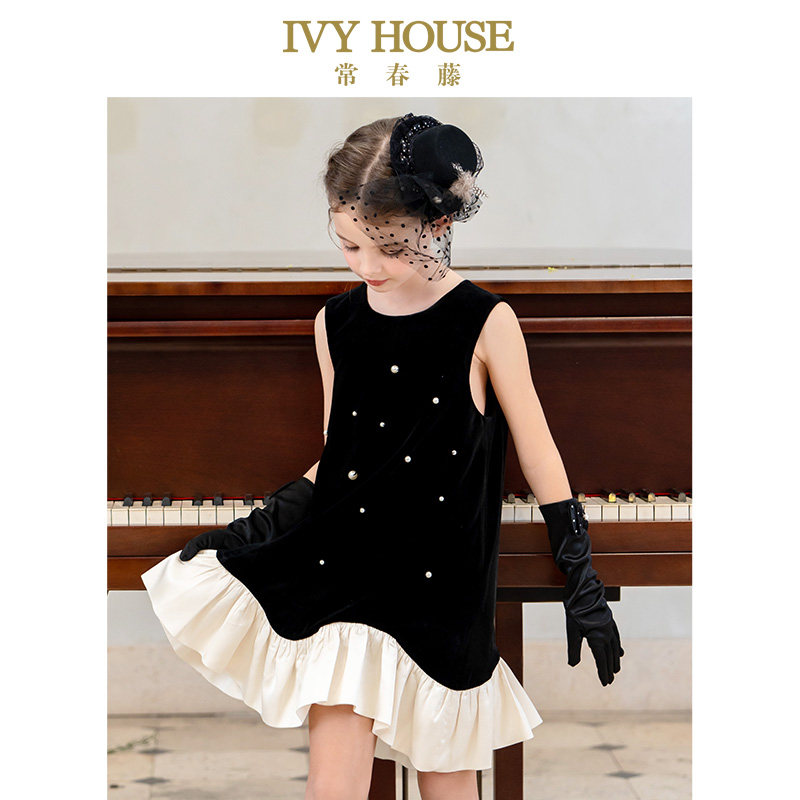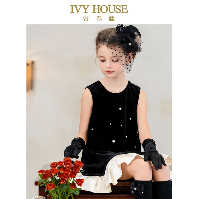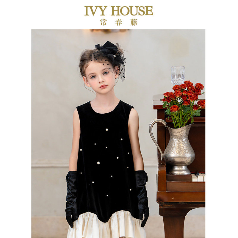 IVY HOUSE常春藤儿童装女童2025秋新款 丝绒背心裙复古连衣裙亲子