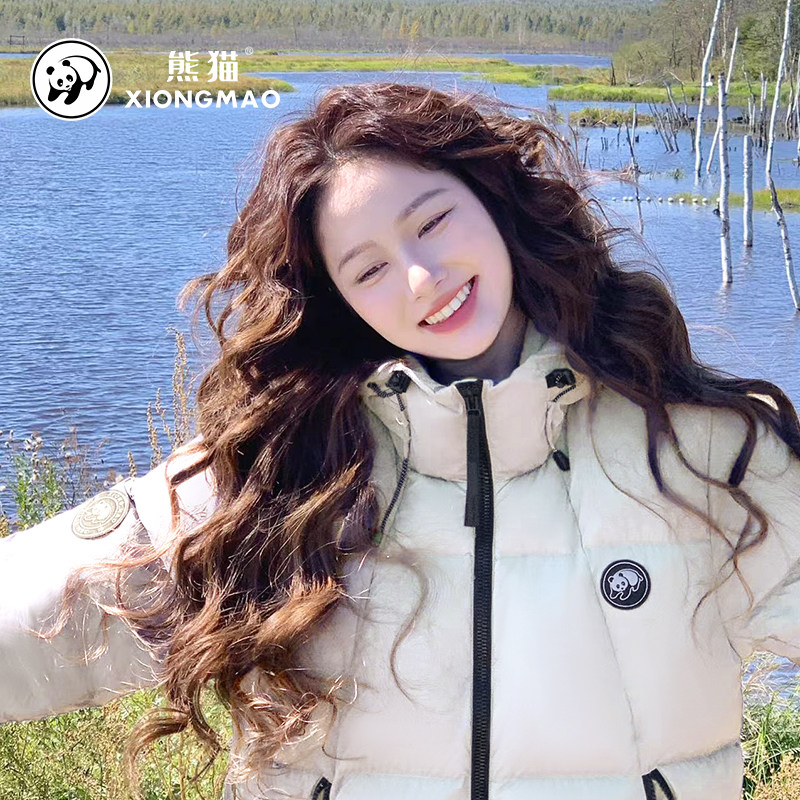 【泡泡】张予曦同款熊猫加厚面包服女保暖防泼水连帽羽绒服外套冬