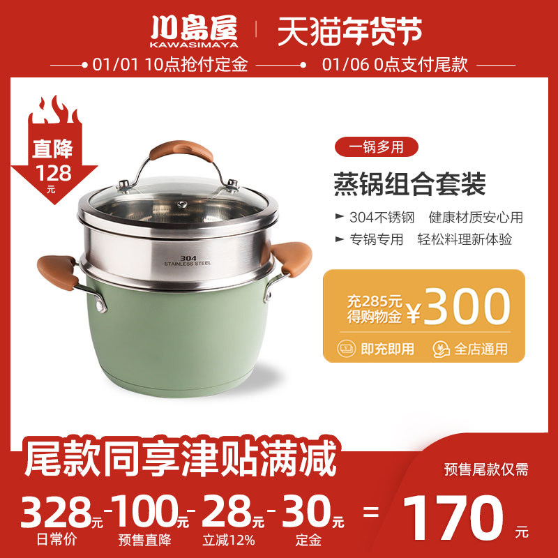 川岛屋蒸锅家用2025新款不锈钢电磁炉燃气灶专用汤锅带蒸笼煮炖锅