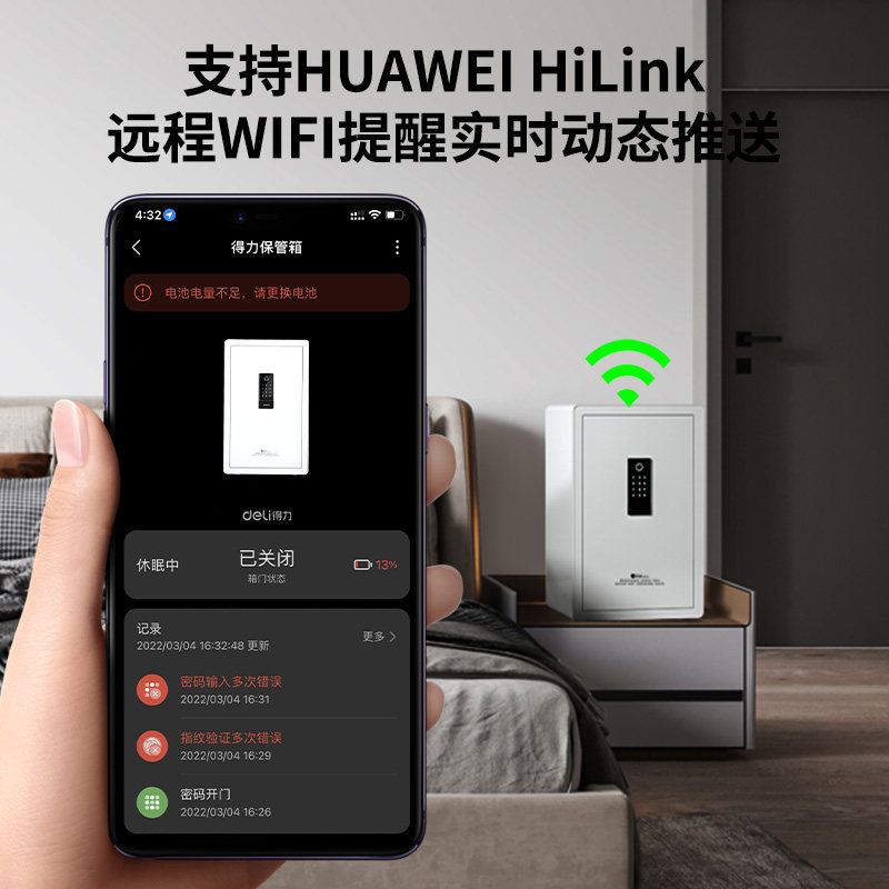 得力WiFi智能保险箱指纹密码办公家居31/46/61/80cm保管箱防盗报警保险柜家用中大型