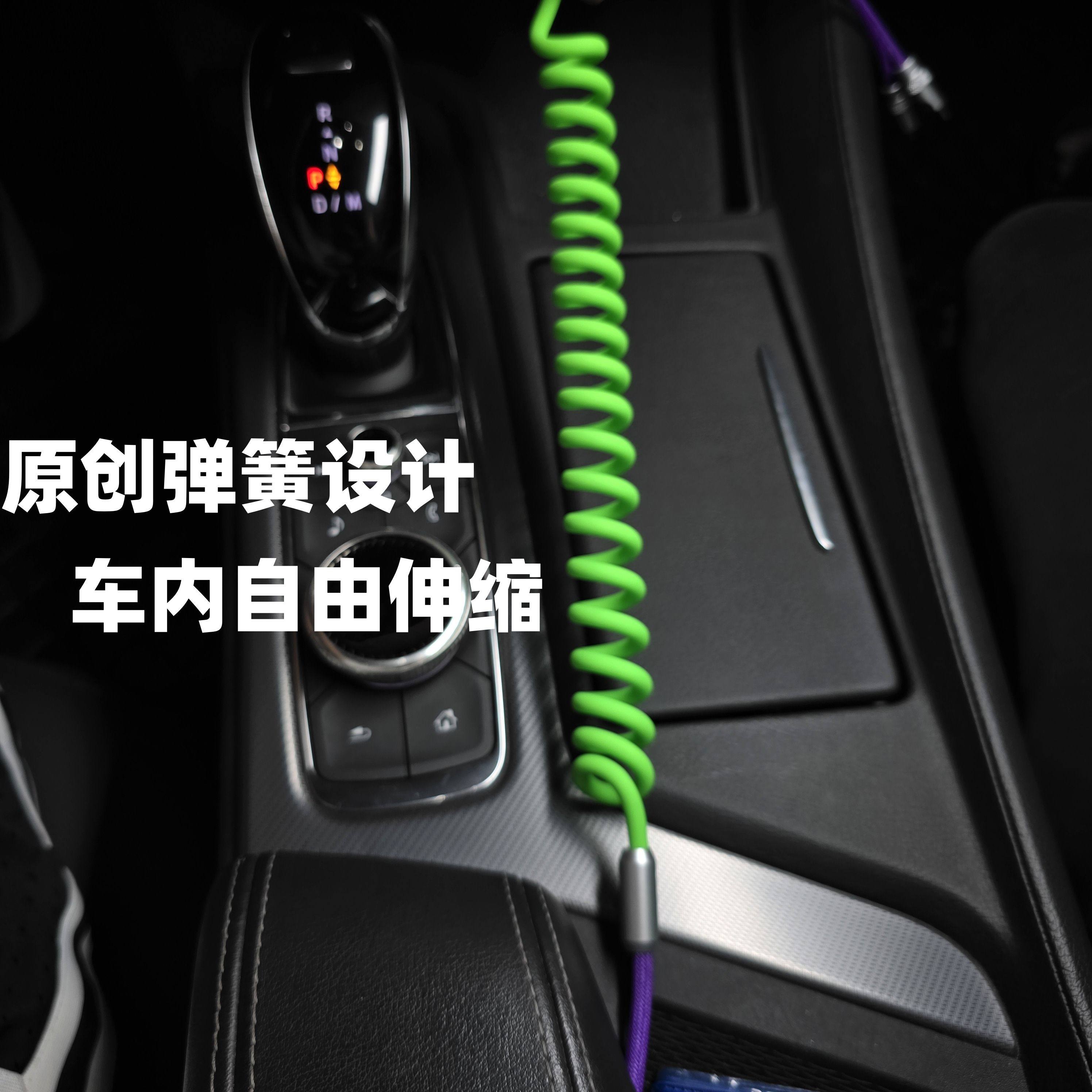 适用Carplay车载充电一拖二弹簧伸收缩数据线iPhone苹果17华为充电器线手机USB快充车用汽车车充奔驰奥迪宝马