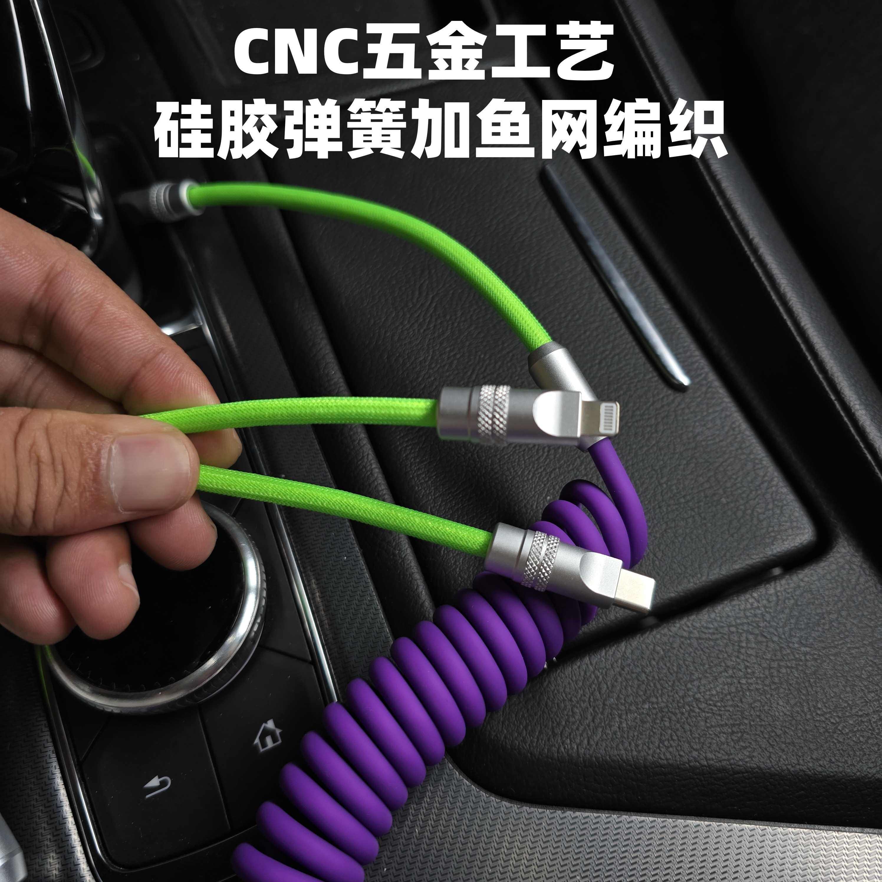 Carplay车载充电线 一拖二弹簧伸收缩数据线