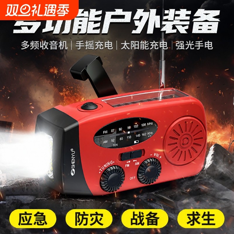手摇发电太阳能收音机手电筒便携防灾照明户外多功能应急求生装备
