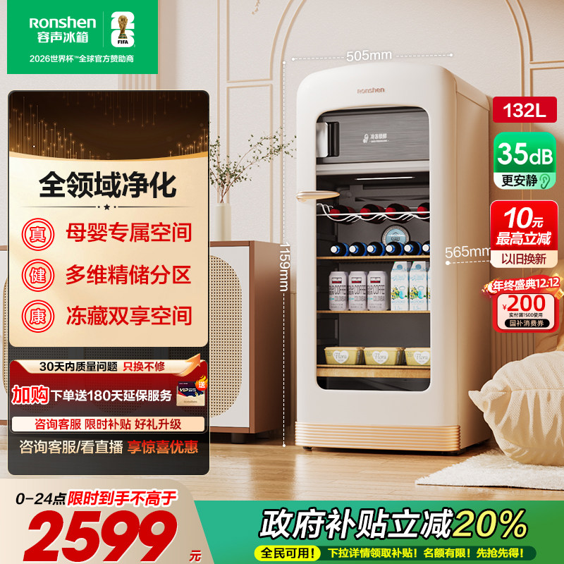 容声方糖132升复古冰箱小型家用客厅冰吧办公室饮料柜冷藏保鲜柜