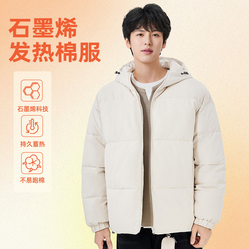 GV真维斯男士棉服冬季加绒加厚保暖连帽棉袄男款石墨烯发热棉衣B