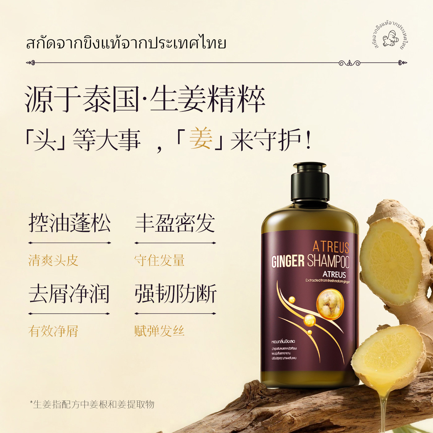 ATREUS生姜洗发水蓬松护发控油老姜汁去屑柔顺洗头膏养发植物密发