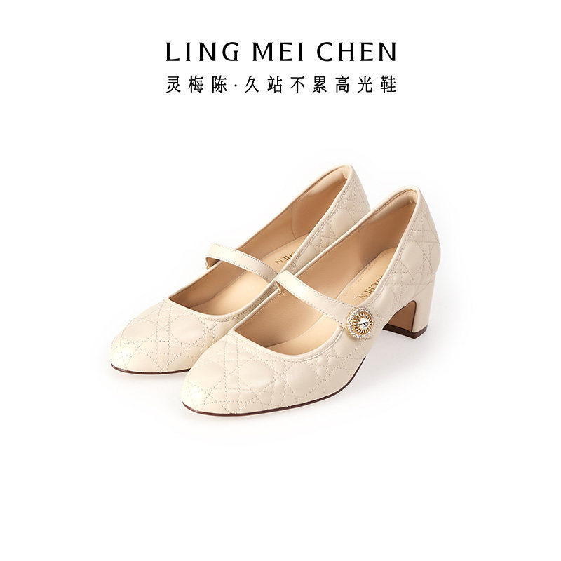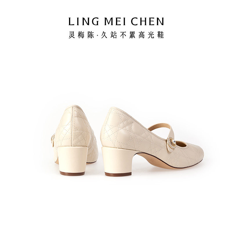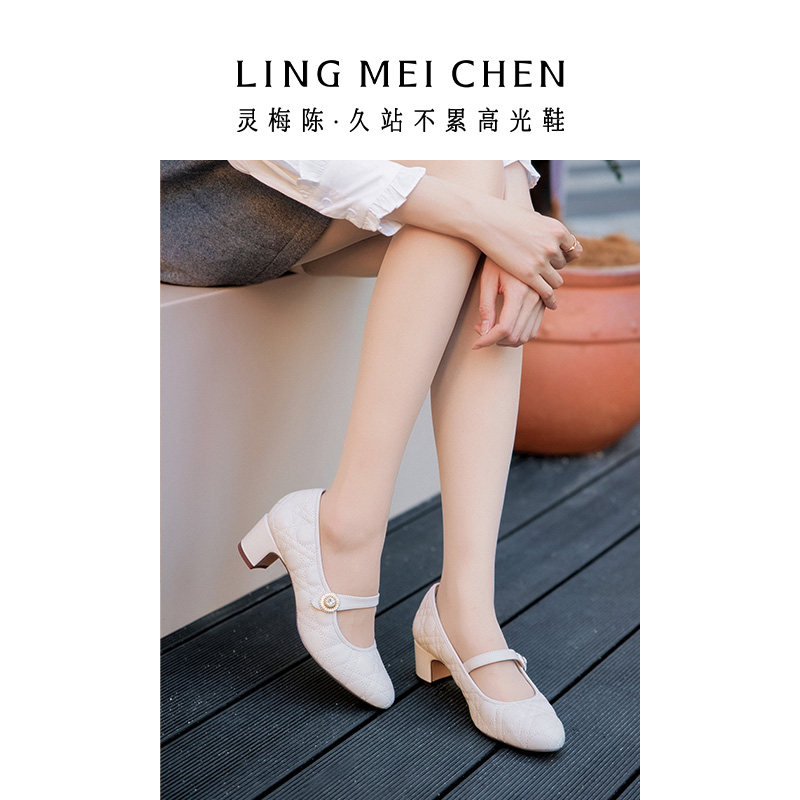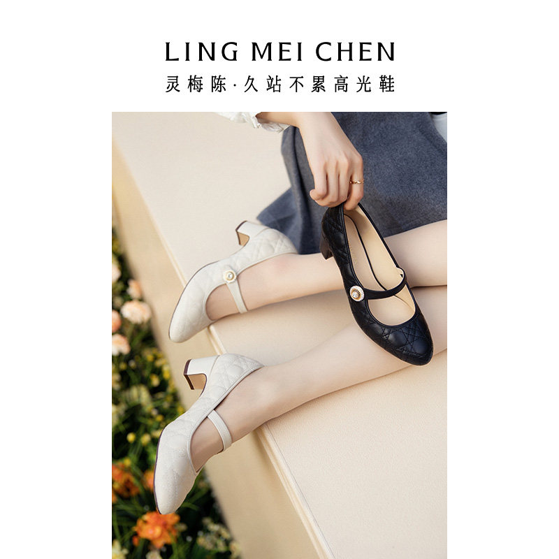 LINGMEICHEN玛丽珍女鞋新款高跟鞋旗袍皮鞋真皮粗跟单鞋中跟婚鞋