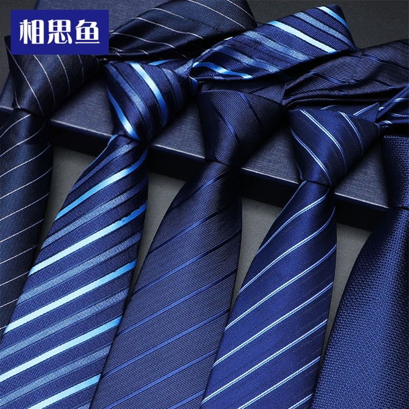 相思鱼结婚手打领带正装商务男士新郎蓝色条纹拉链式免打结懒人