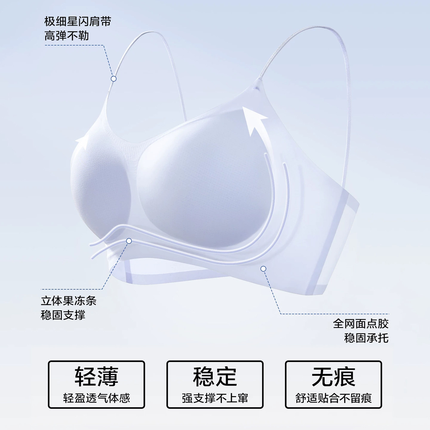 草本初色内衣女细肩带无痕夏季薄款大胸显小胸聚拢凉感无钢圈文胸