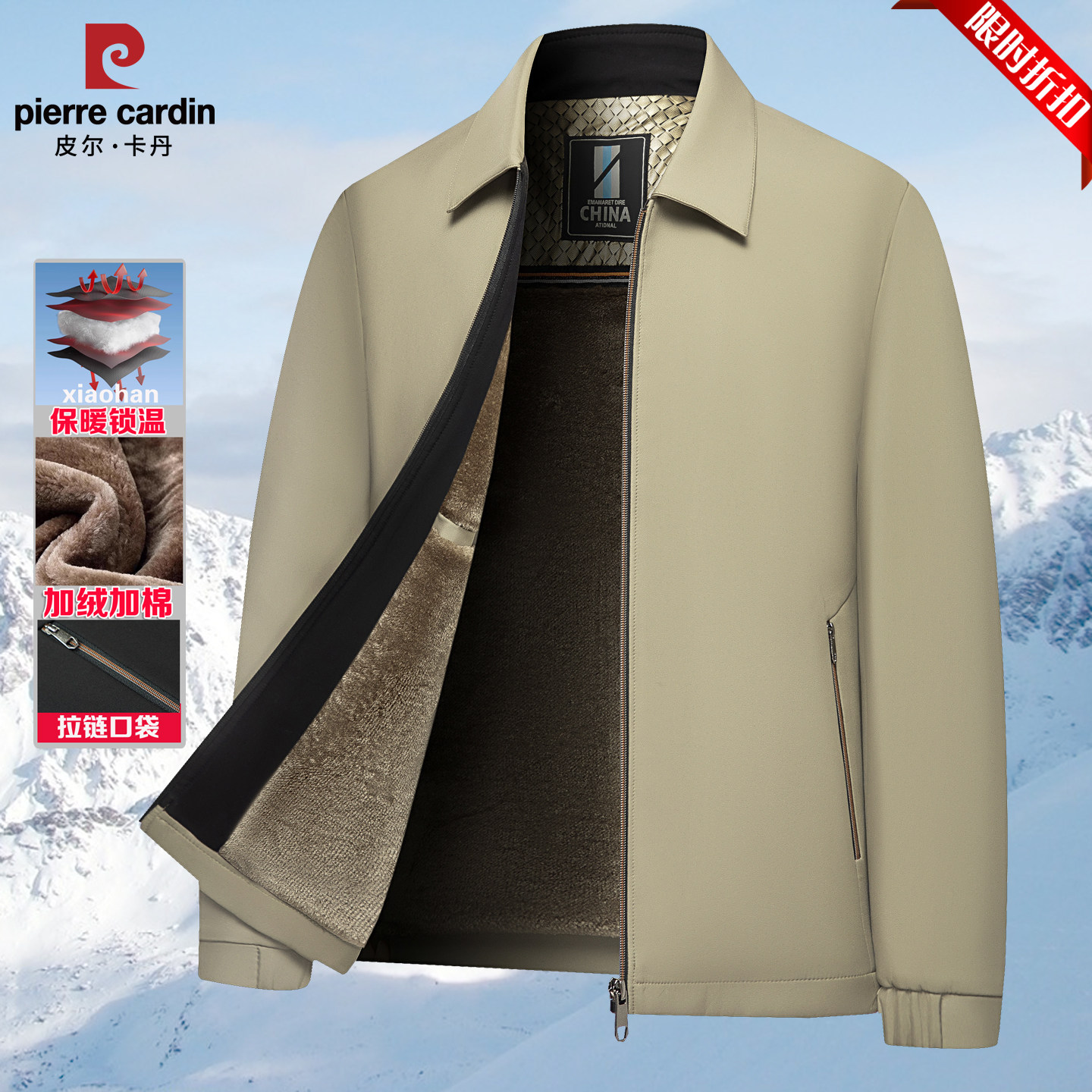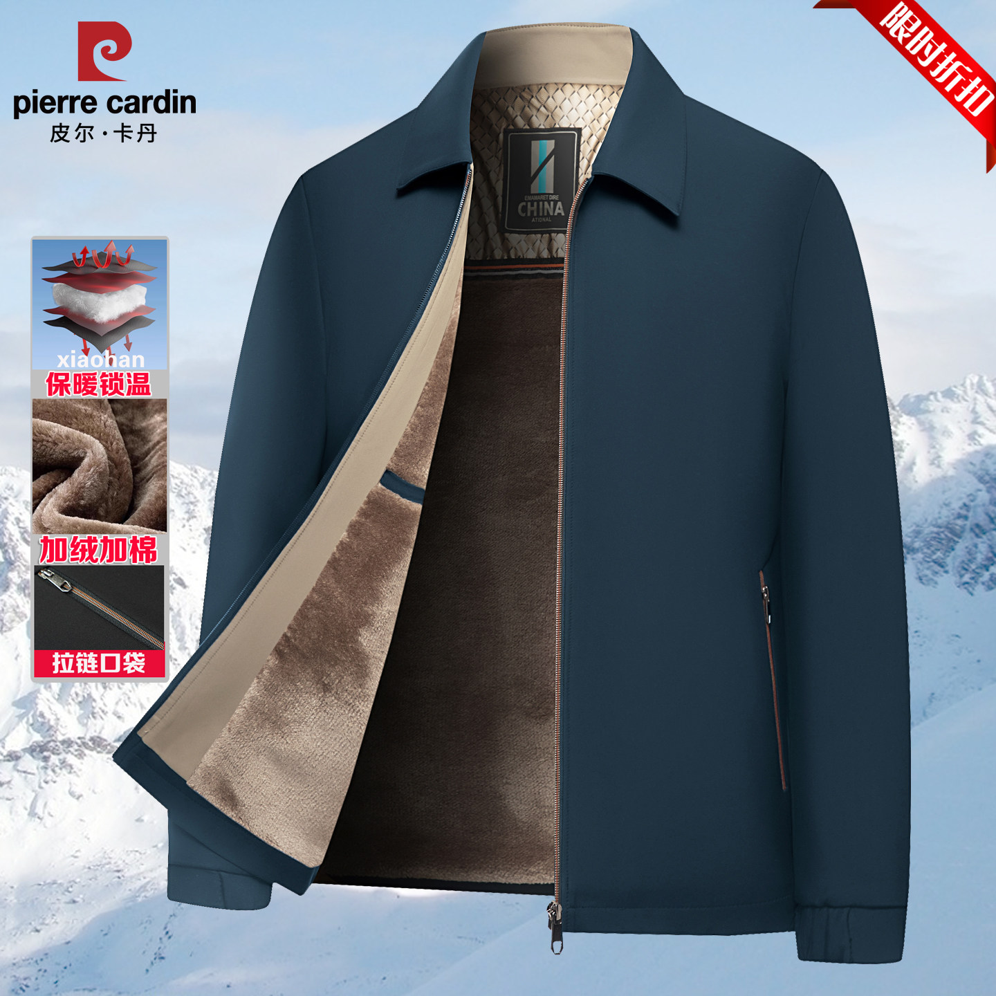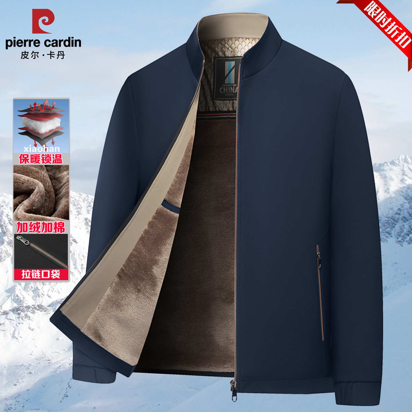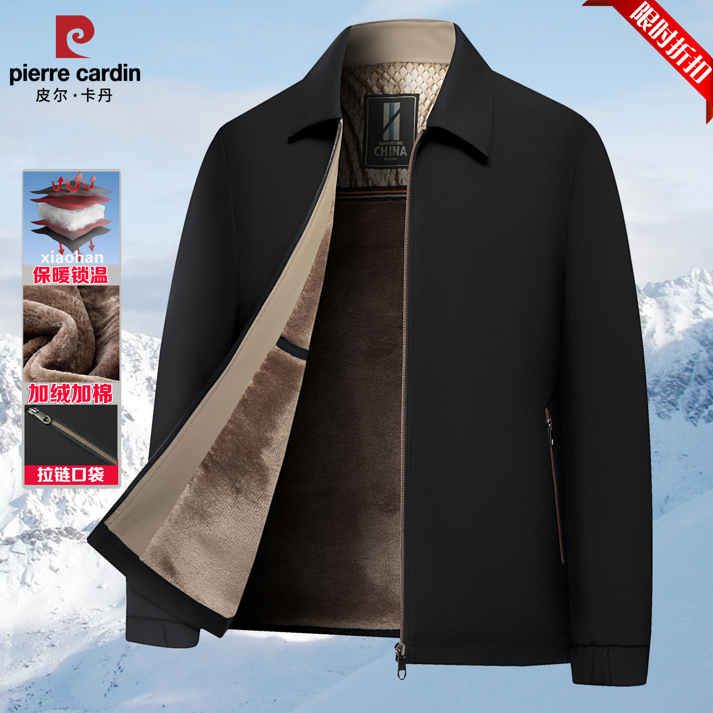 皮尔卡丹行政夹克男外套秋冬新款中年加绒加厚休闲上衣棉服爸爸装