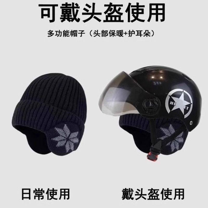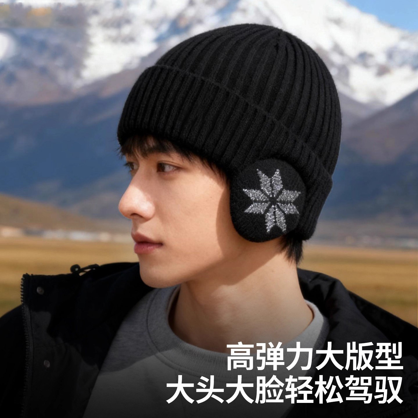 护耳毛线帽男士冬季加绒帽子男骑行保暖加厚防寒棉帽针织冷帽防风
