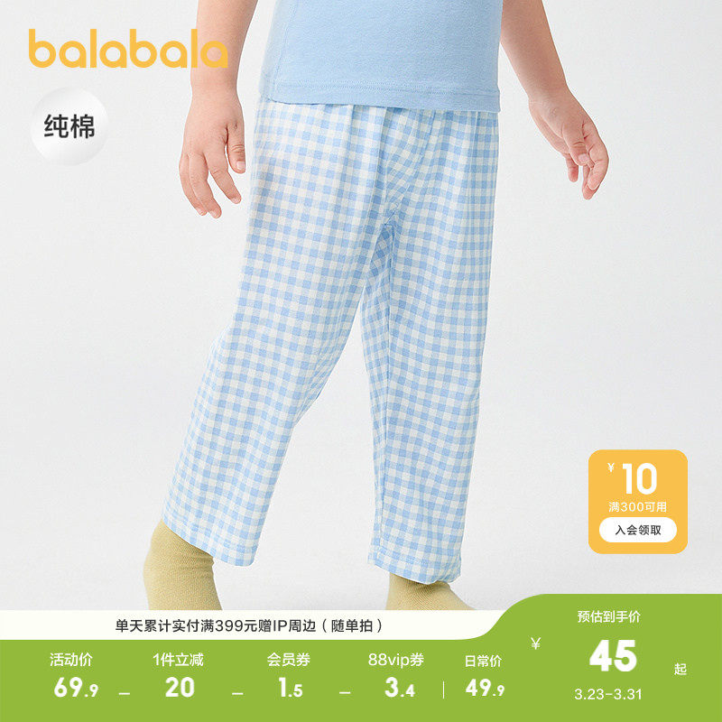 巴拉巴拉儿童睡裤夏季防蚊裤儿童家居裤男女童裤子中大童纯棉格纹