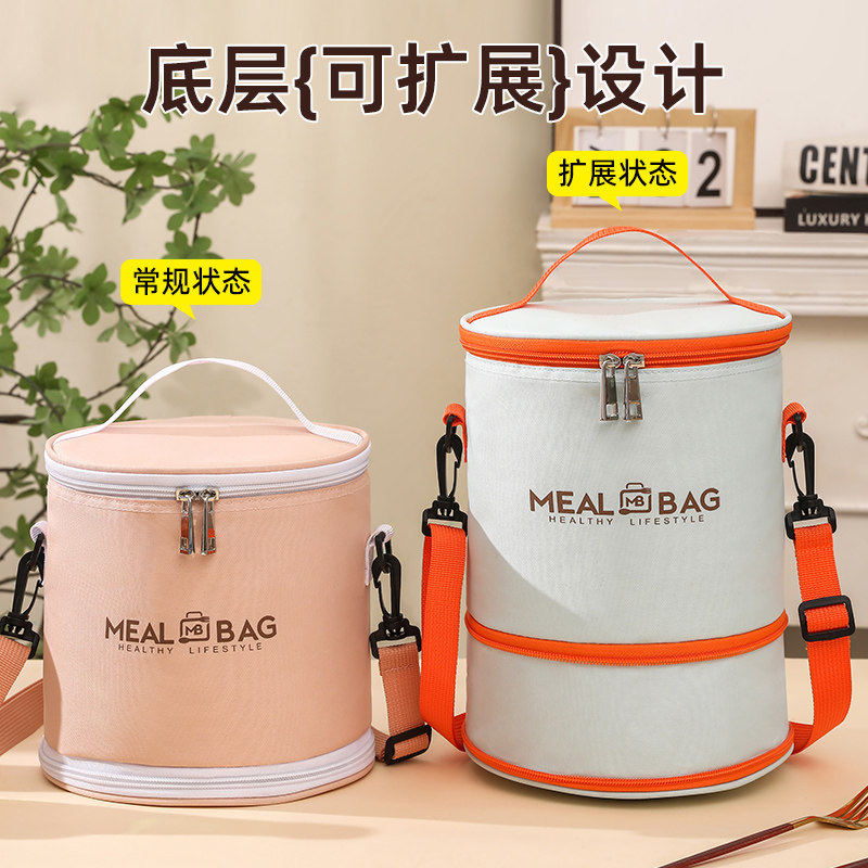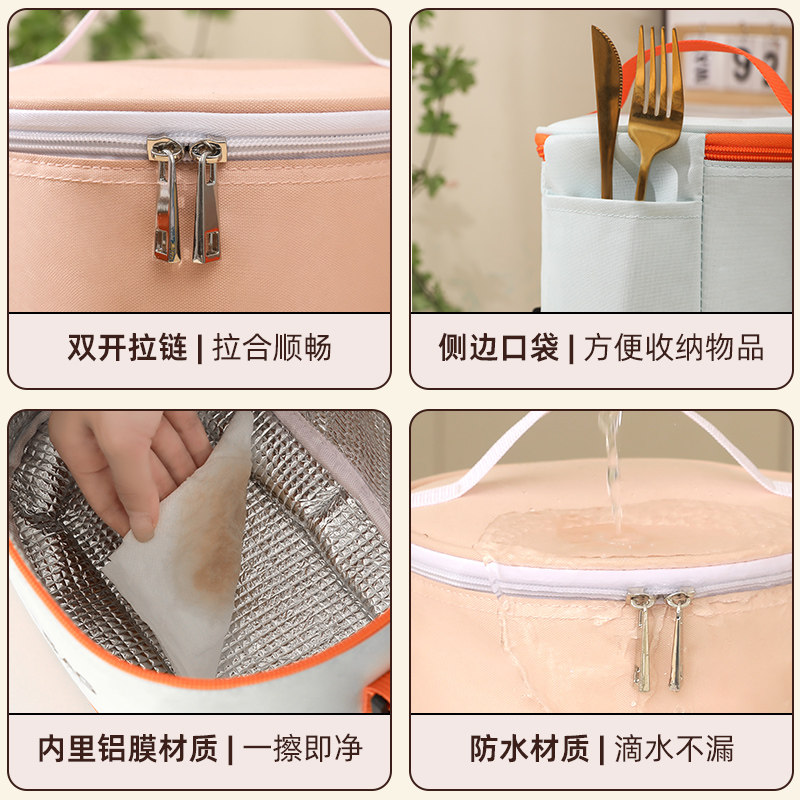 保温饭盒袋子手提饭兜铝箔加厚防水学生上班族圆形饭桶便携便当包