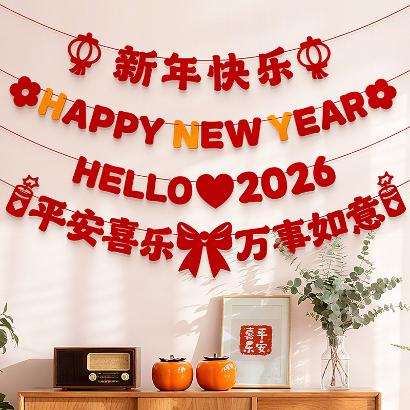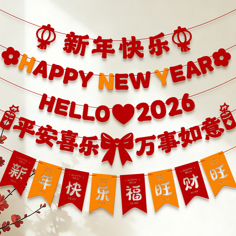 新年快乐装饰品春节气年味氛围拉花场景布置过年2026贺年家里客厅