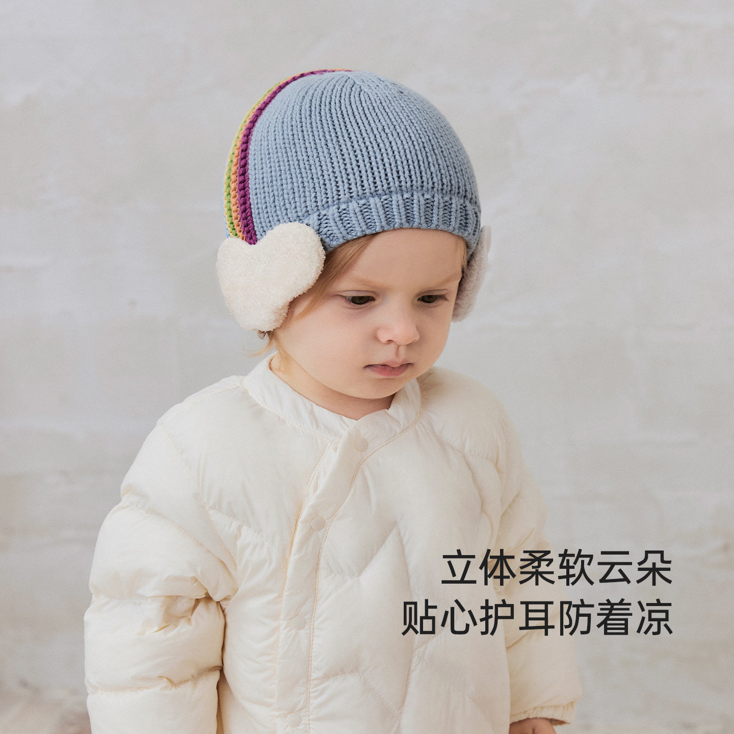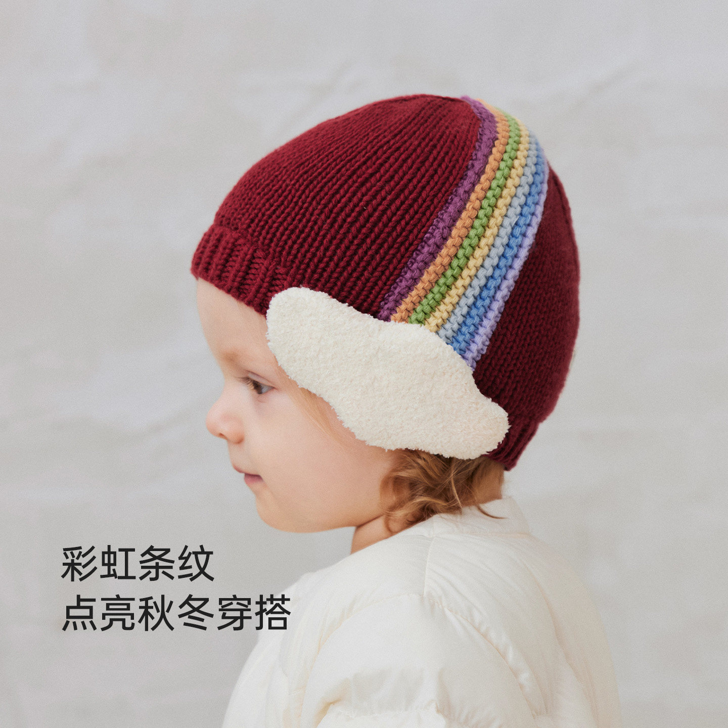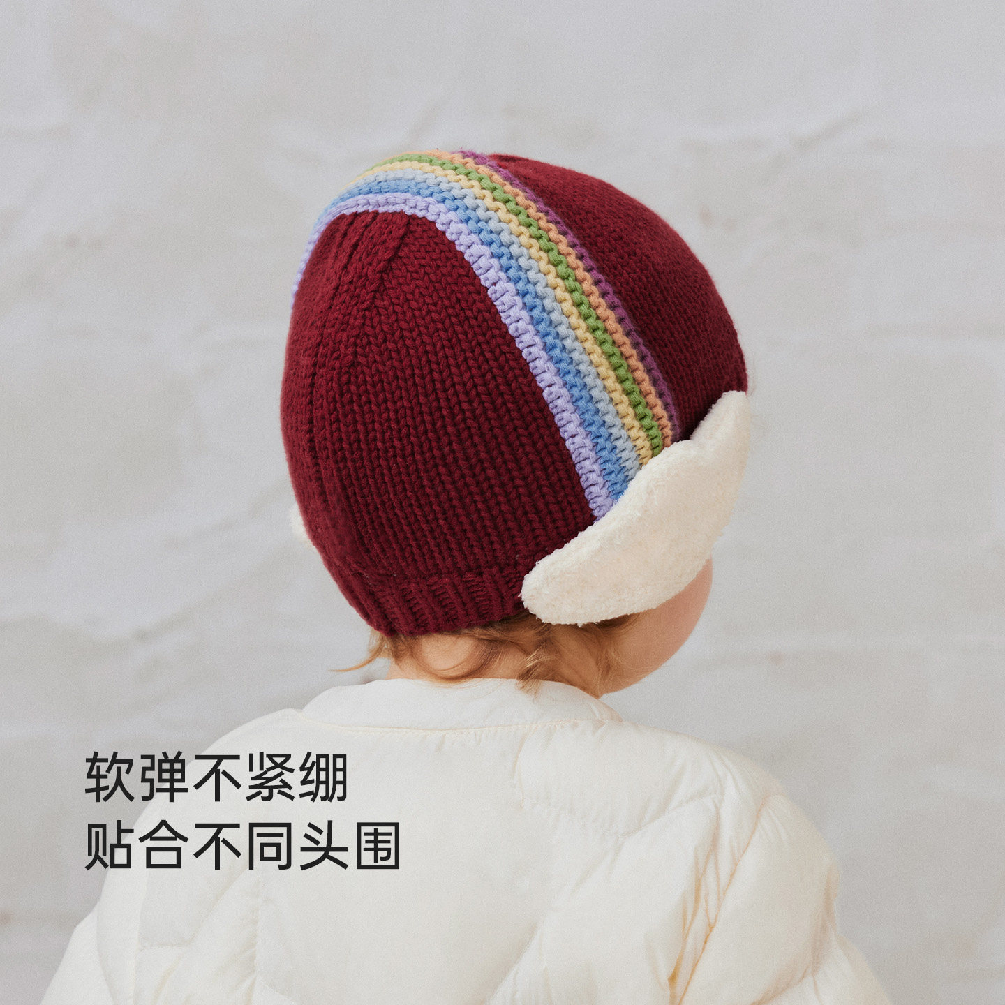 babylove婴儿针织帽冬季保暖彩虹帽宝宝加绒加厚帽子毛线帽护耳帽