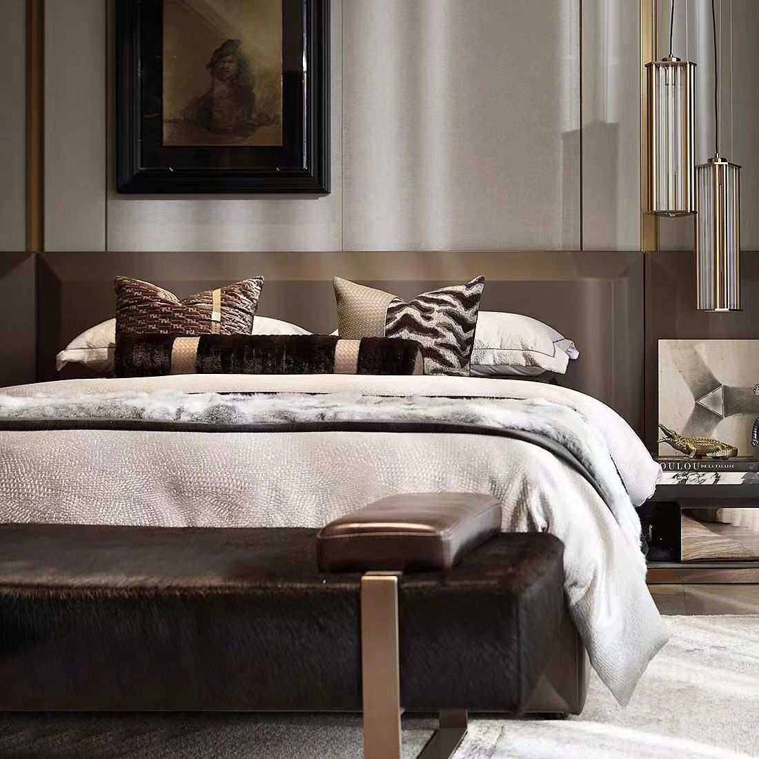 轻奢现代样板间床品售楼部样板房床上用品软装摆场简约多件套