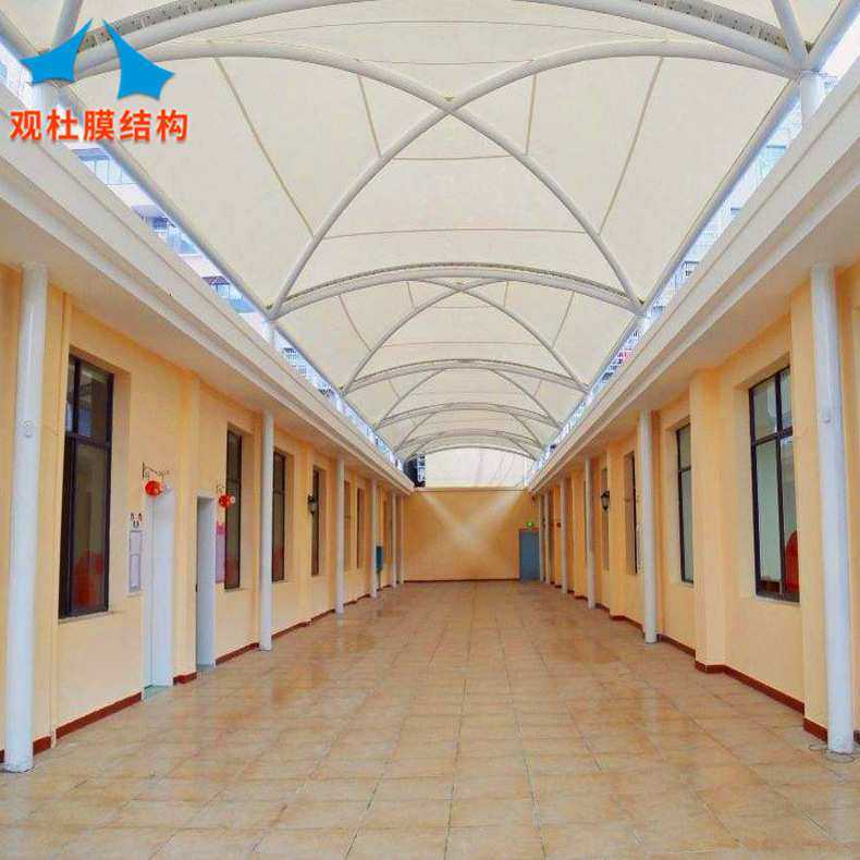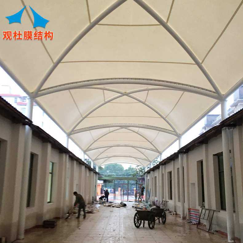 承建膜结构商业设施 索膜结构人行天桥 工厂景观张拉膜走廊过道棚