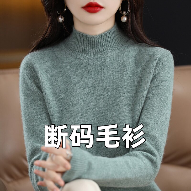 破产处理】 半高领秋冬毛衣女宽松套头加厚显瘦大码针织打底内搭