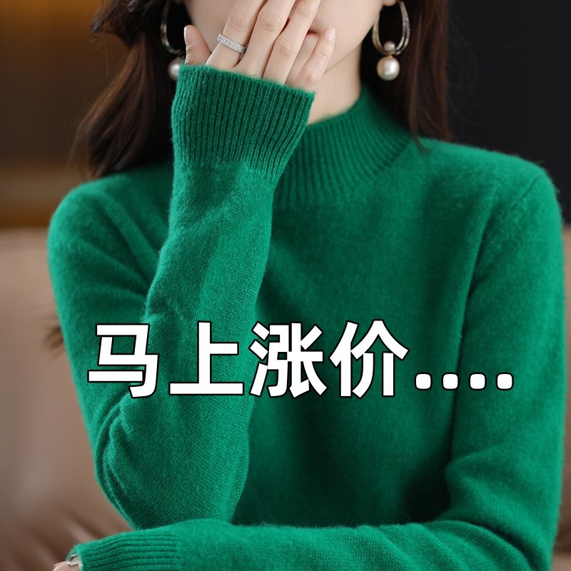 2025针织衫女秋冬新款羊绒半高领毛衣羊毛修身内搭纯色打底衫加厚