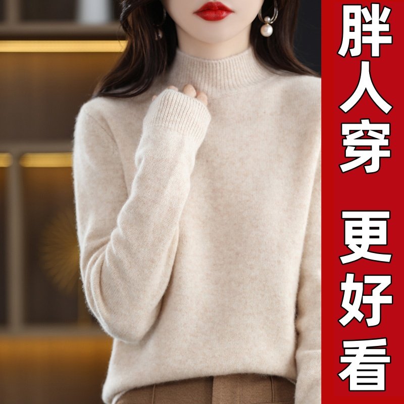K1【爆款秒杀】半高圆领针织衫套头大码宽松百搭打底针织