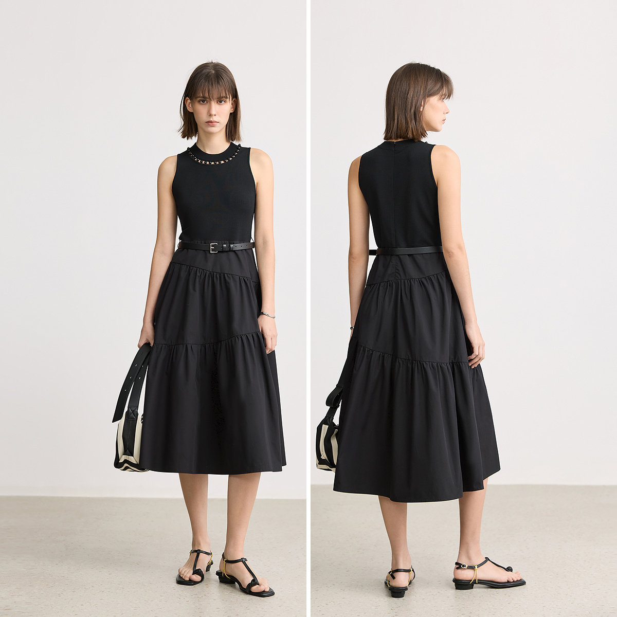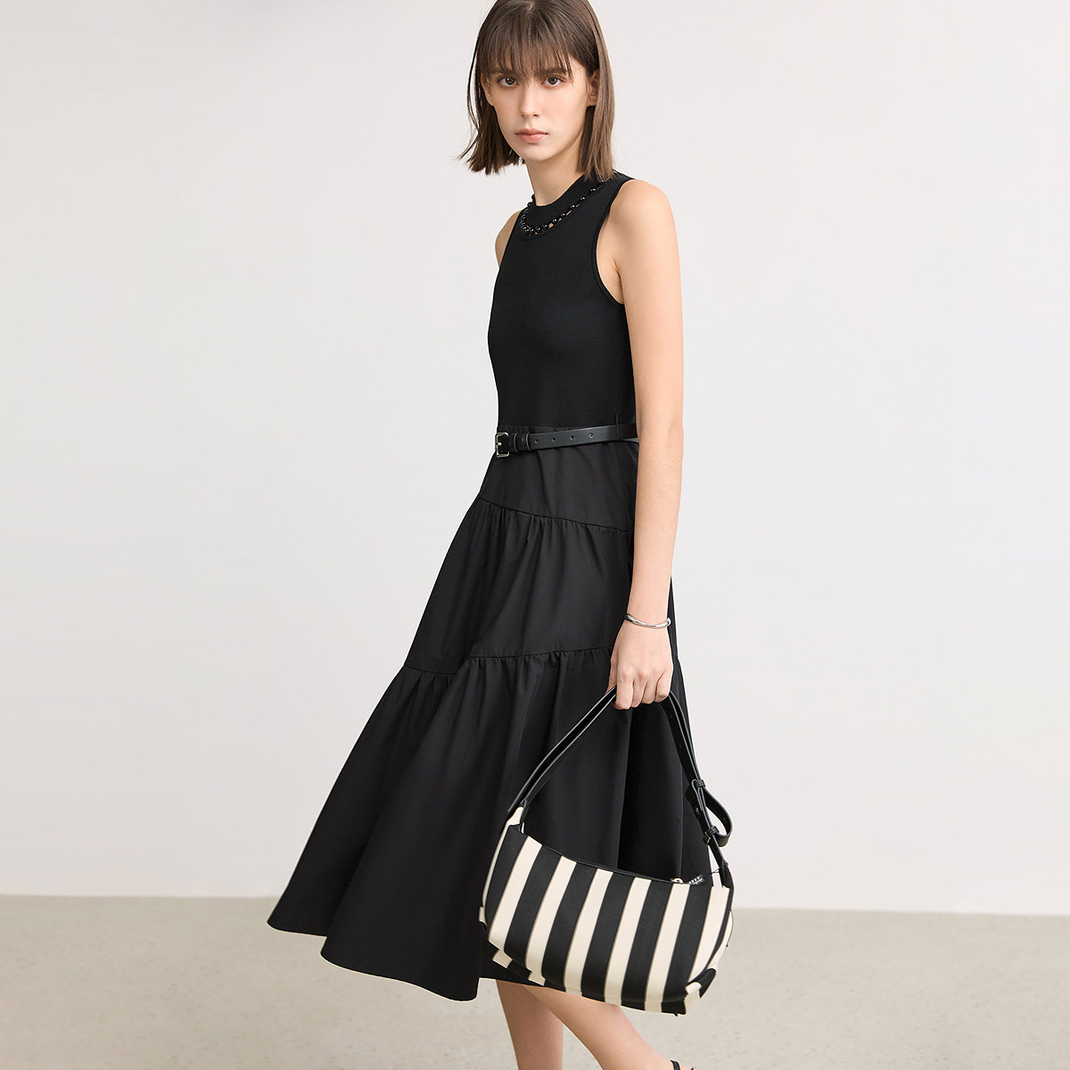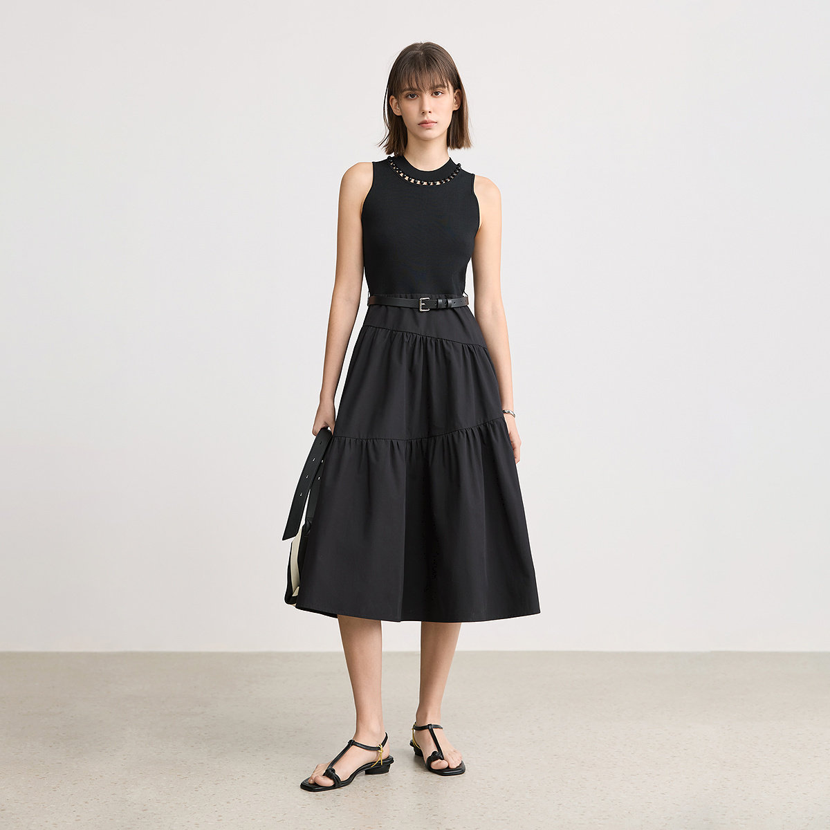 【LILY时光小黑裙】商场同款2025新款女装针梭拼接连衣裙蛋糕裙