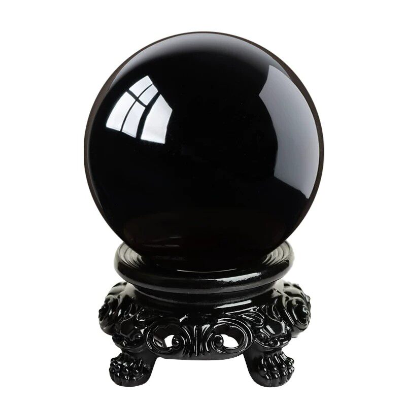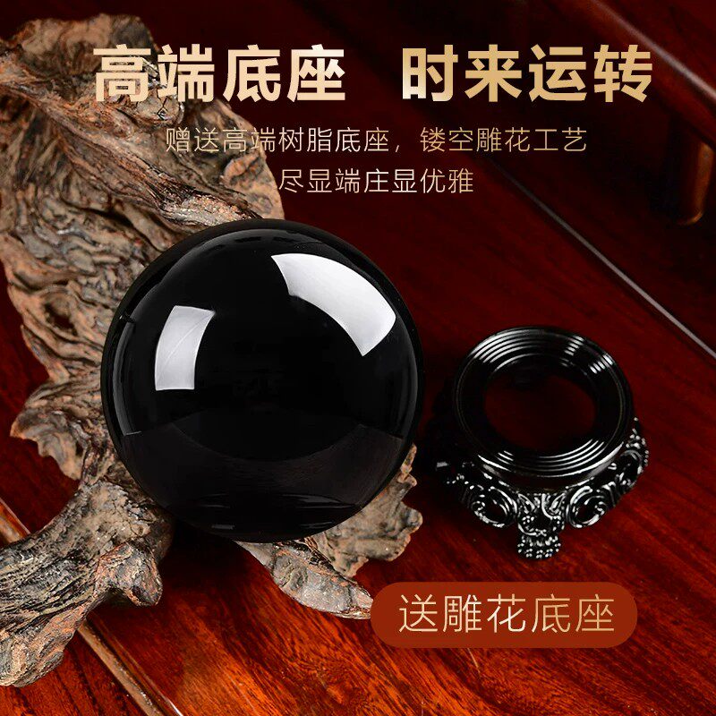 天然金曜石水晶球黑曜石摆件原矿彩虹眼银曜石客厅转运球黑耀石