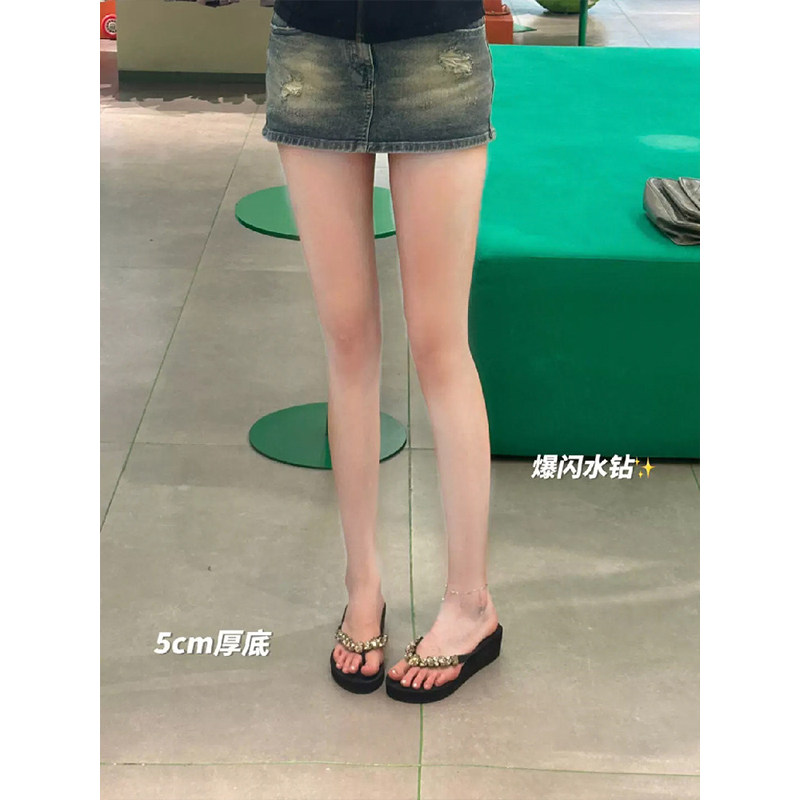 水钻厚底人字拖女夏2026新款外穿时尚增高坡跟防滑海边沙滩凉拖鞋