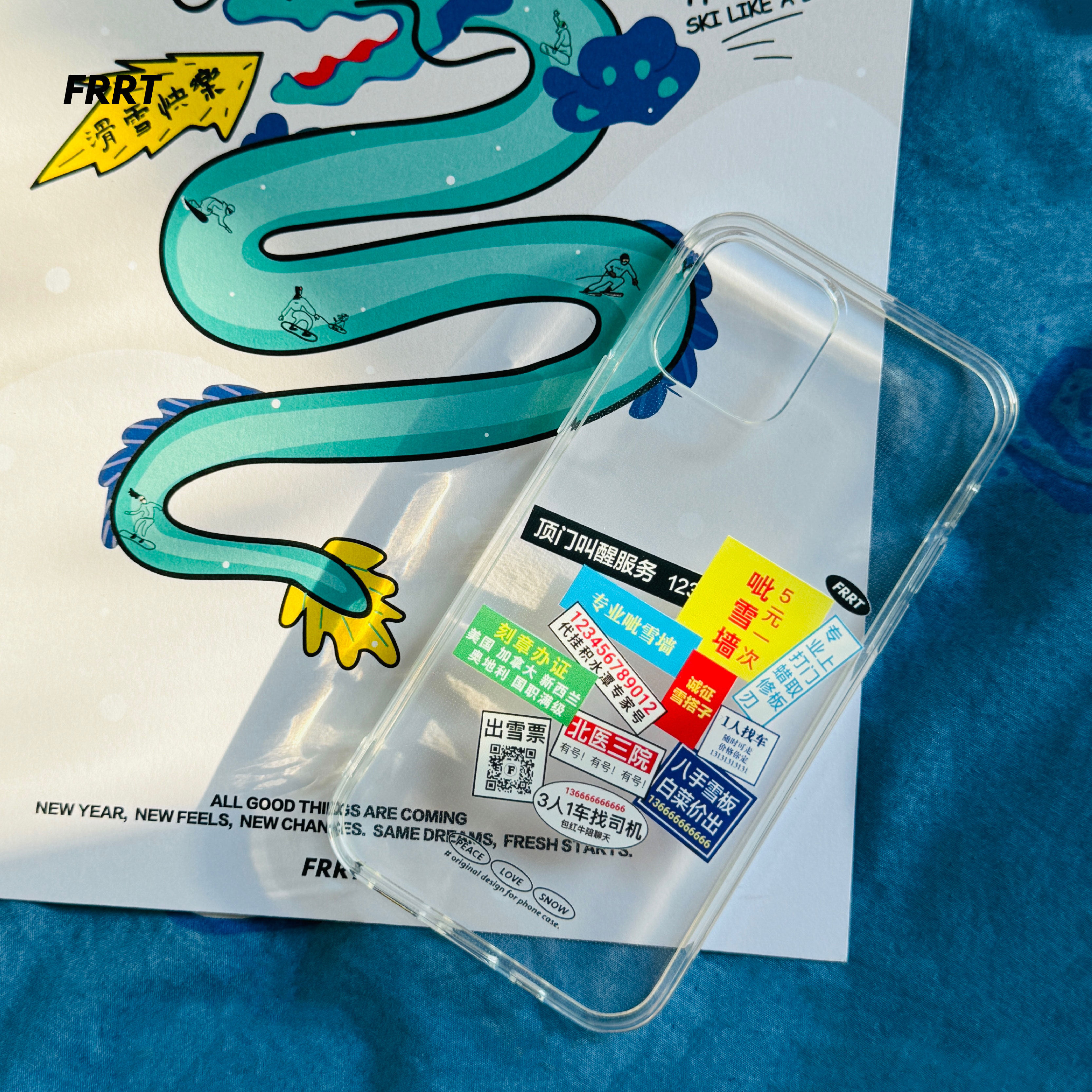 FRRT原创设计 滑雪小广告 呲雪墙顶门叫醒服务雪搭子单双板滑雪透明TPU手机壳适用于131415promax华为Mate