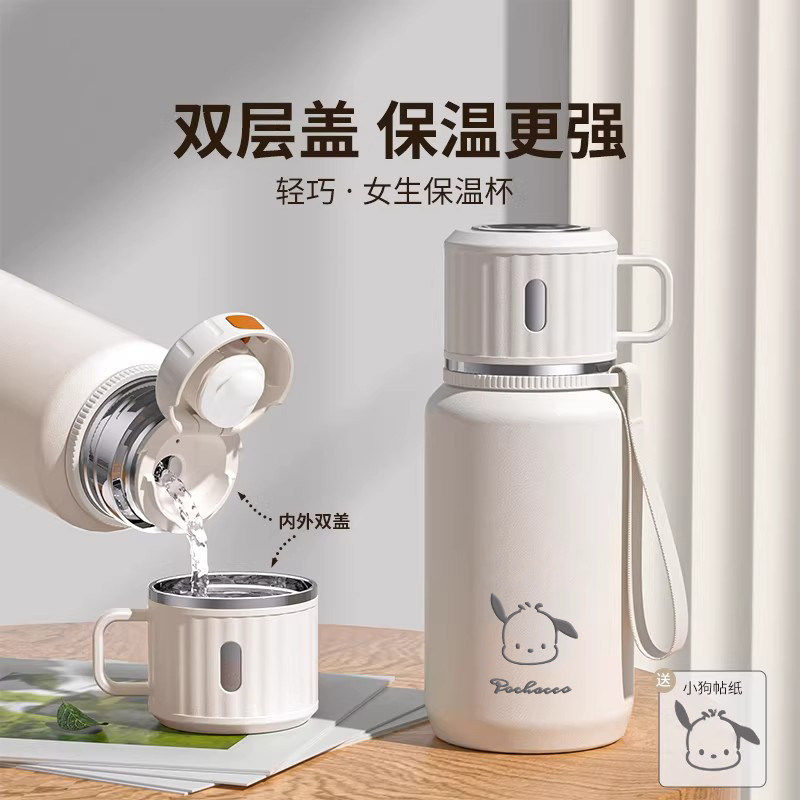 言仓线条小狗联名保温杯保冷儿童便携高颜值情侣女生圣诞生日礼物