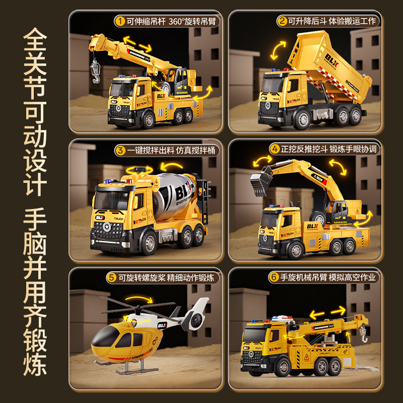 儿童合金挖掘机玩具男孩工程车套装大号汽车翻斗搅拌推土吊车飞机