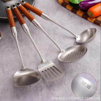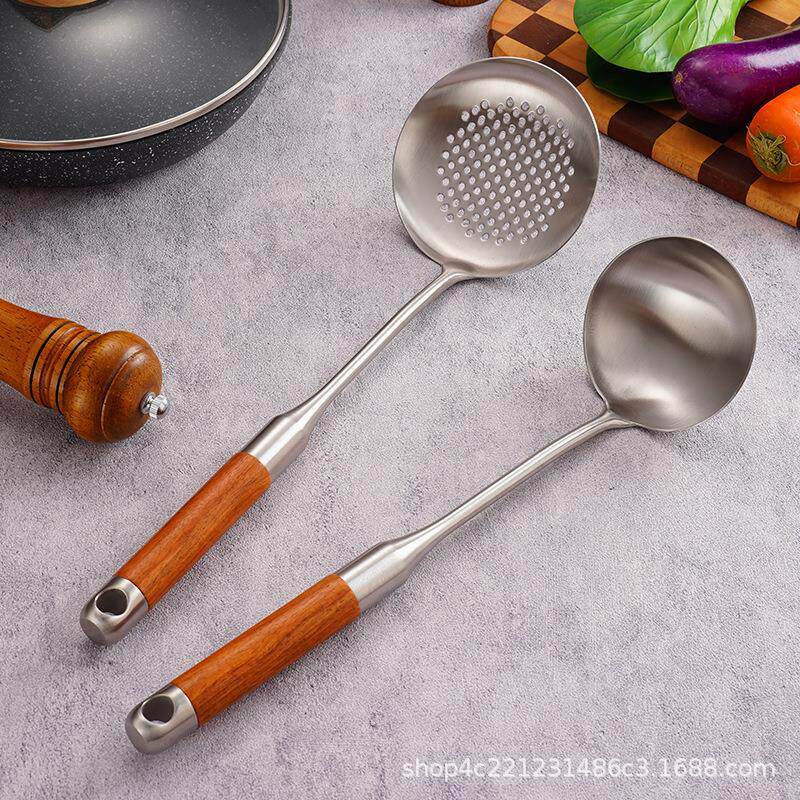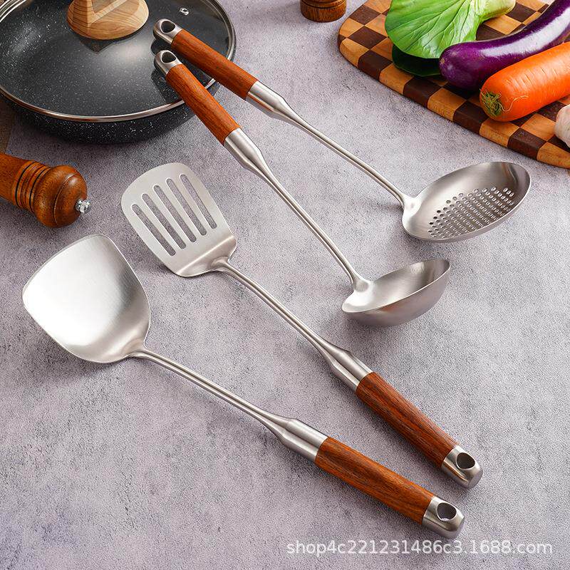 316不锈钢厨具花梨木柄加厚炒菜铲子汤勺漏勺家用套装锅铲防盛汤